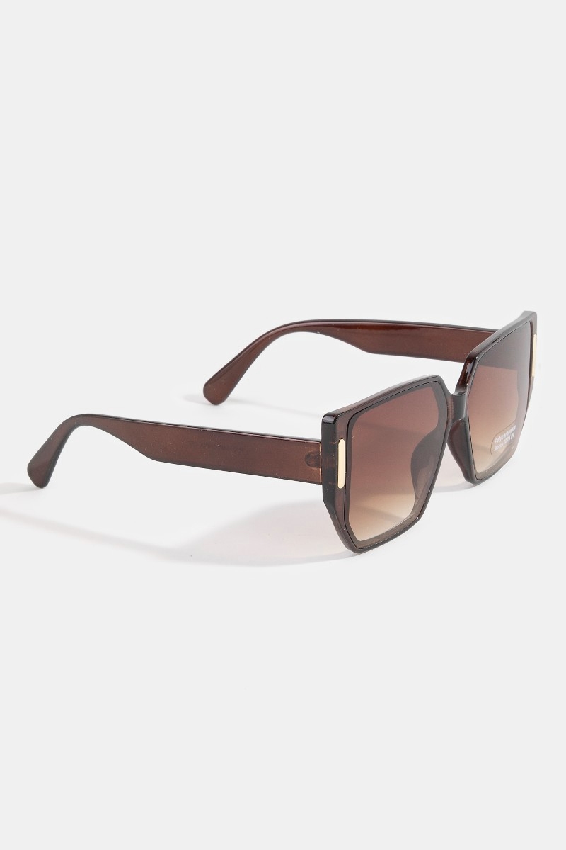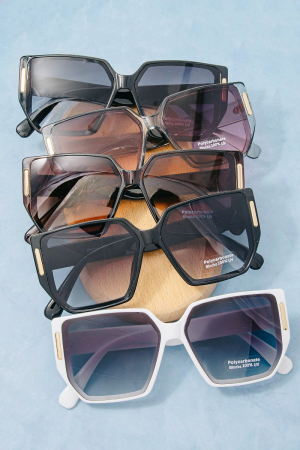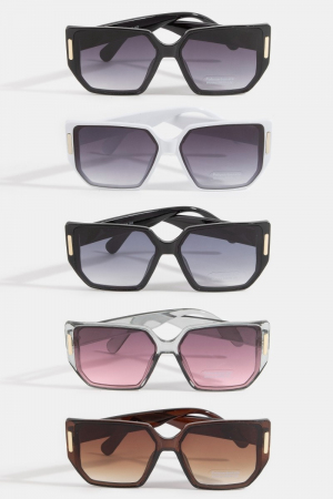 - This set of sunglasses adds a modern wide angular geometric sunglasses with gold bar temple style. Revel in the intricate design that effortlessly distinguishes this set of sunglasses, making it a statement piece.