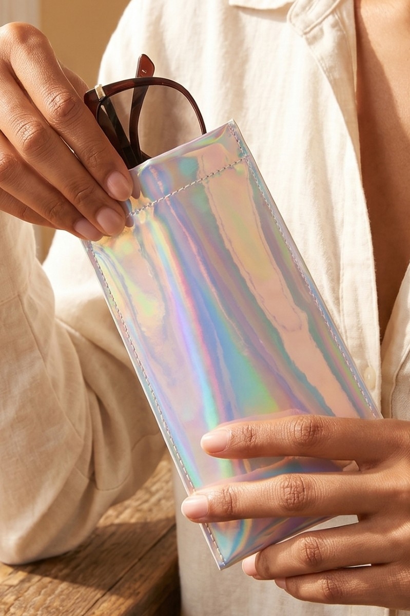 - This set of sunglasses displays a fashionable twelve piece iridescent sunglasses pouch set style. Immerse yourself in the world of understated glamour as this set of sunglasses effortlessly exudes timeless appeal.