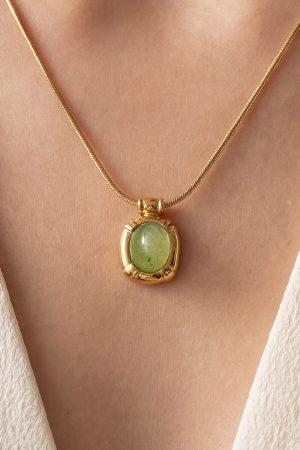 • This pendant necklace features a fashionable snake chain gold bezel stone style. Step into a world of refined taste as this pendant necklace effortlessly refines the details of your outfit.