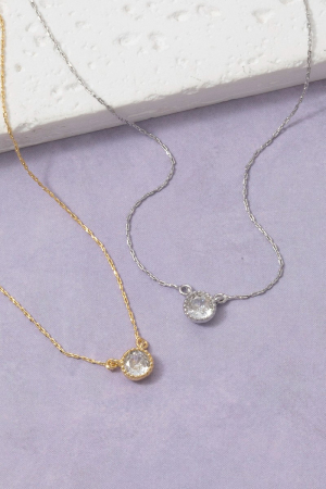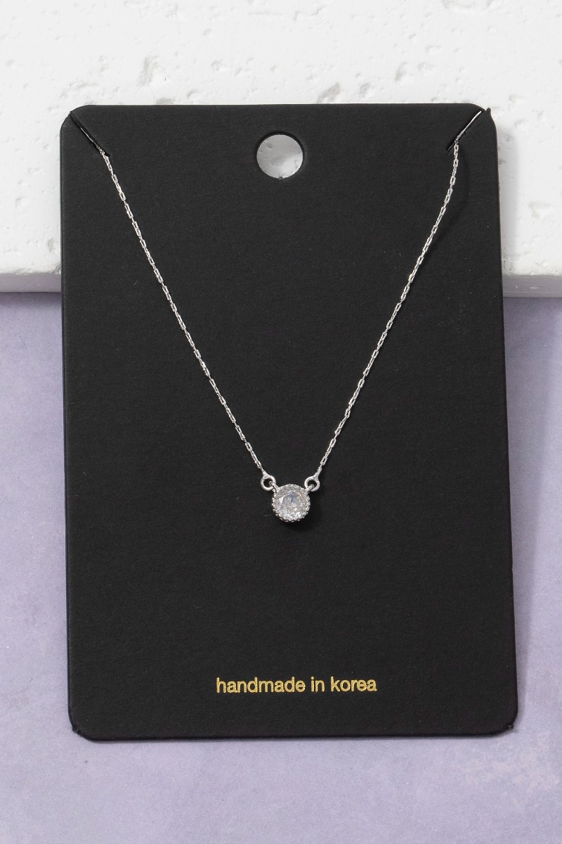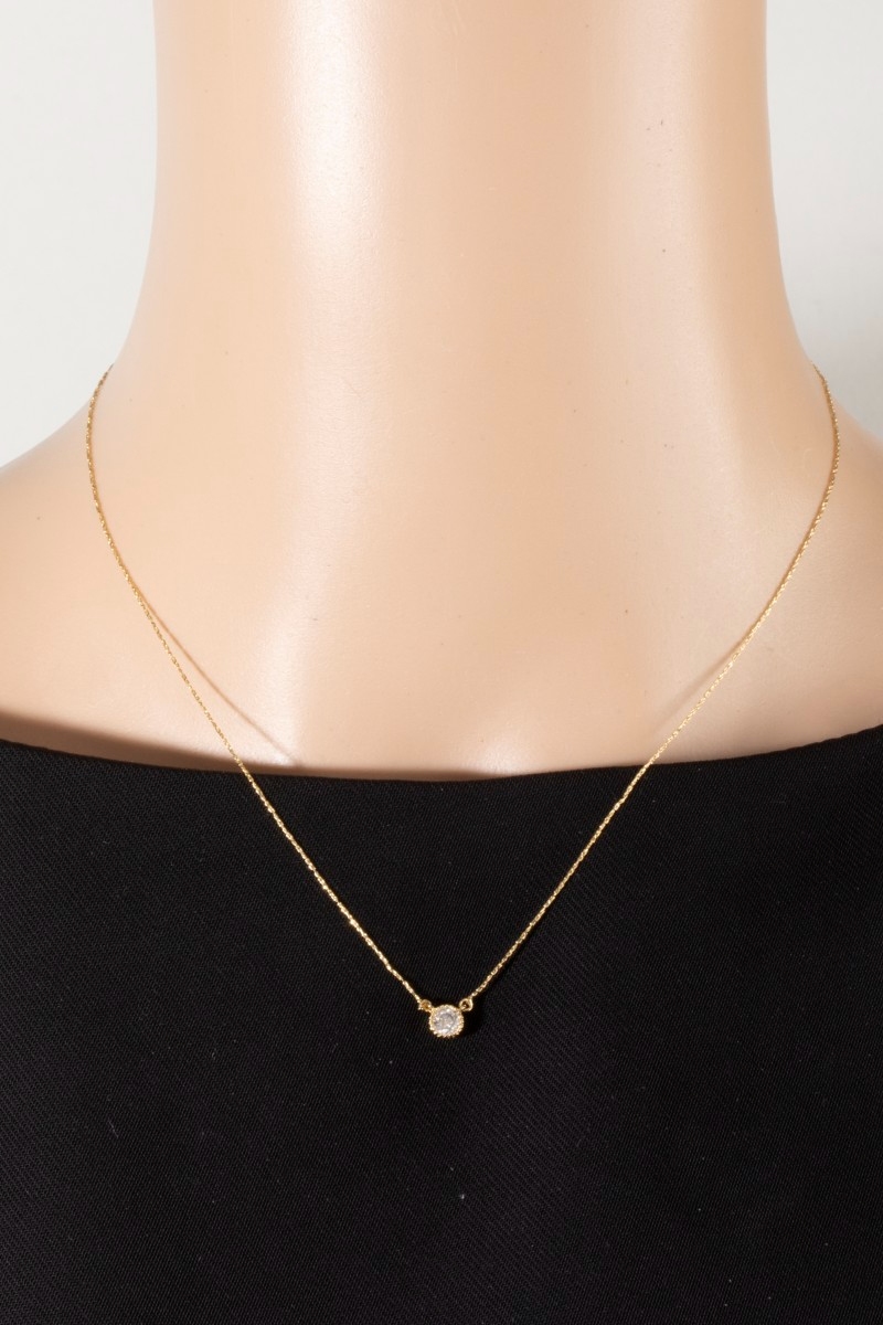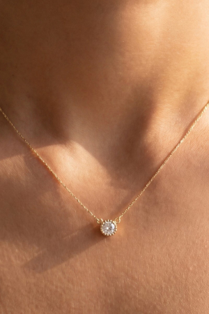 - This pendant necklace displays a vibrant dainty chain round cubic zirconia halo solitaire style. Experience refined sophistication with this understated yet stylish piece.