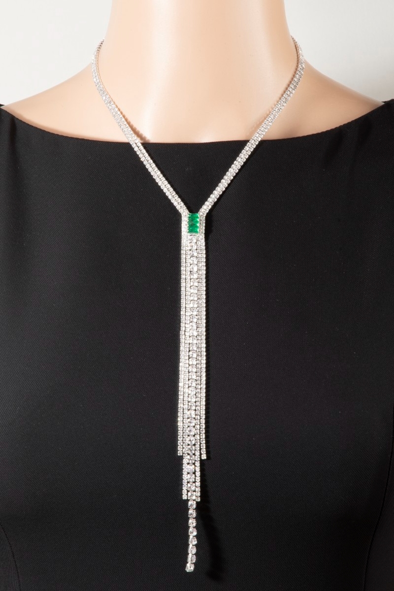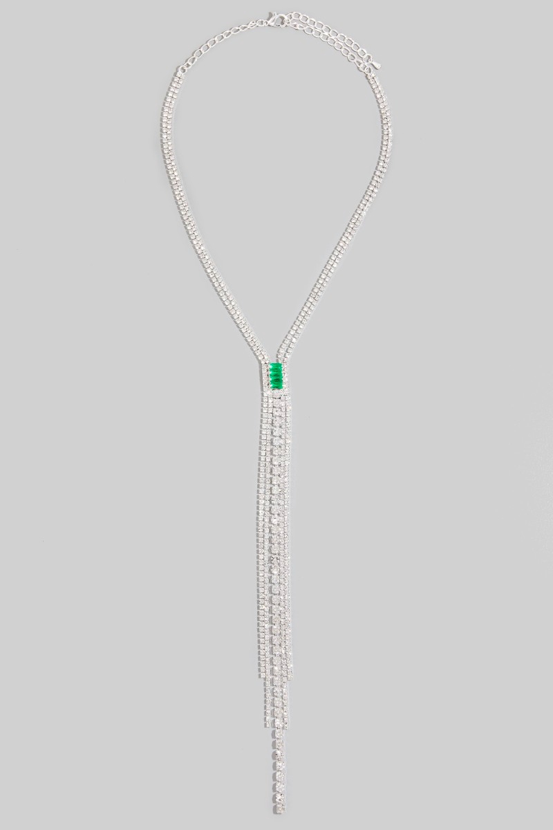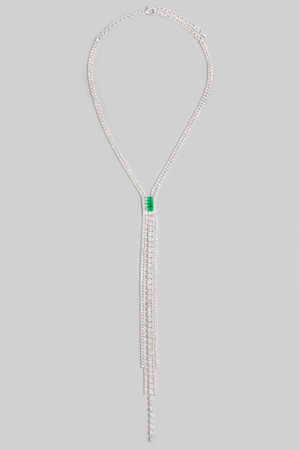 • This introduces a stunning cz fringe lariat necklace with emerald accent style. Immerse yourself in the details of design, as this effortlessly becomes a conversation starter.