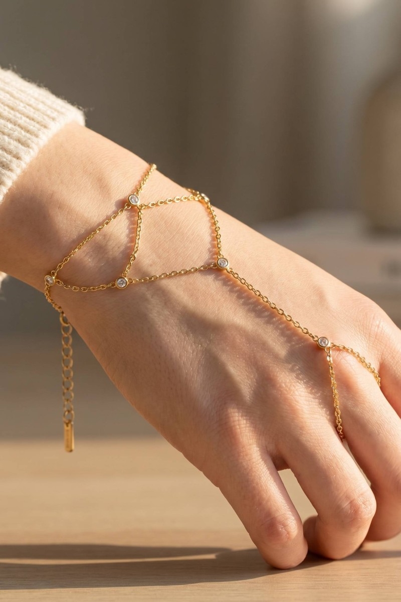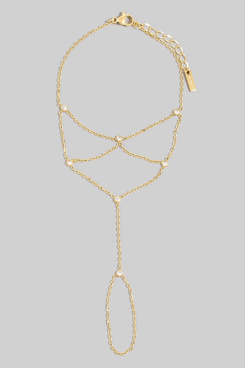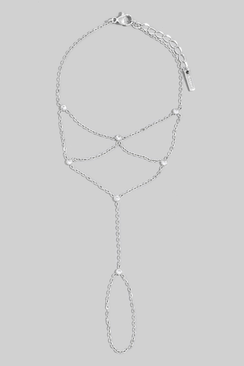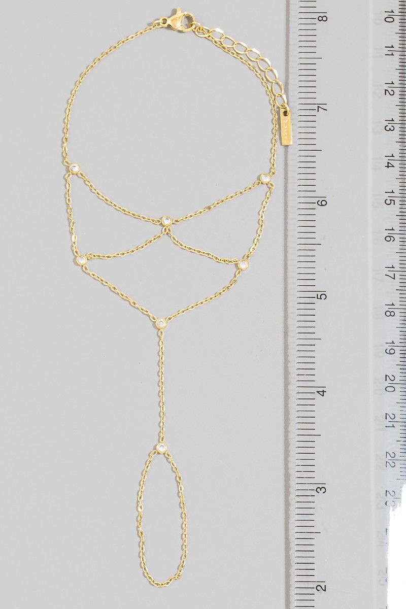 - This bracelet brings a stunning multi-strand cubic zirconia bezel drape hand chain finger ring style. Delight in the intricate details that make this bracelet an essential element in expressing your fashion identity.