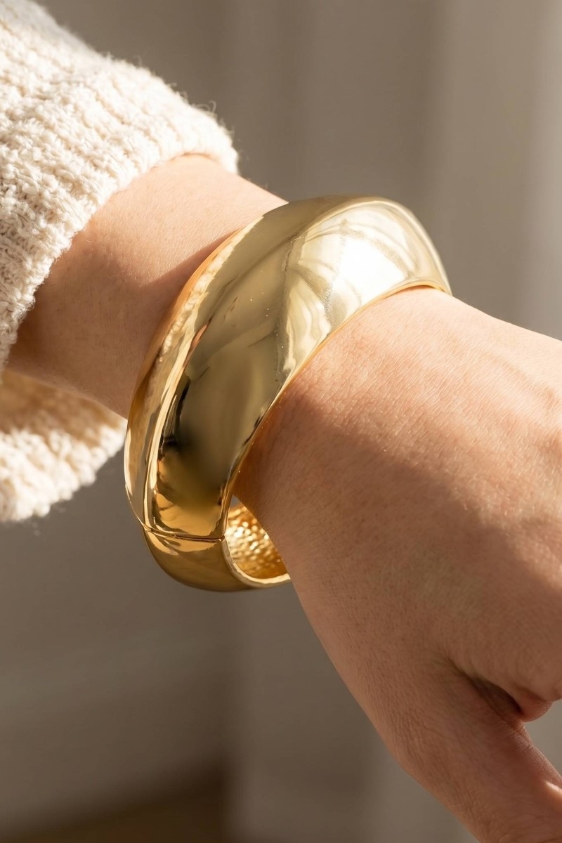 - This bangle bracelet showcases a timeless chunky puffy dome hinged style. Explore a blend of classic charm and contemporary flair.