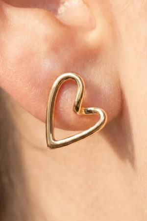 - This pair of stud earrings brings a unique open heart style. Experience the joy of accessorizing with this piece that effortlessly combines versatility and charm.