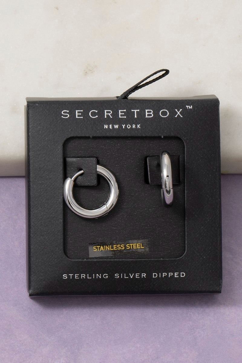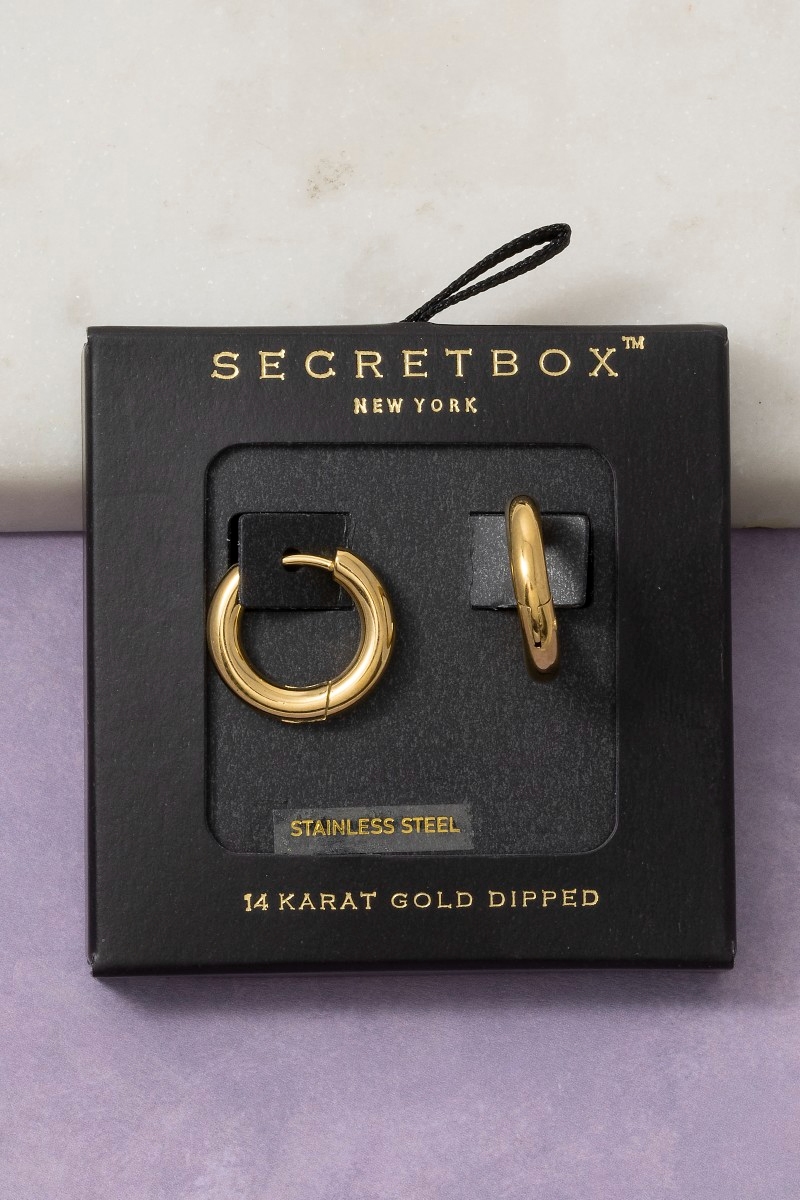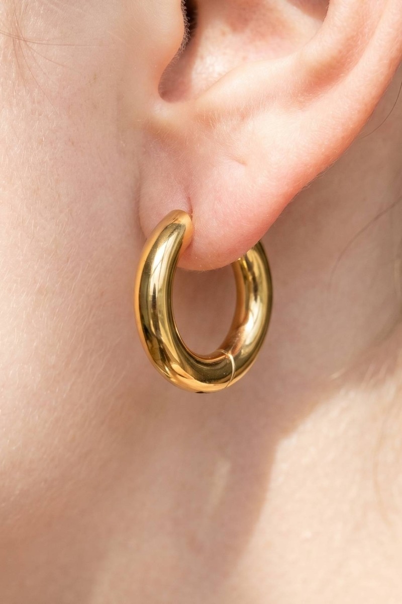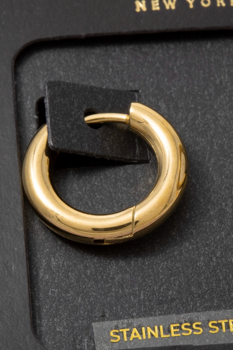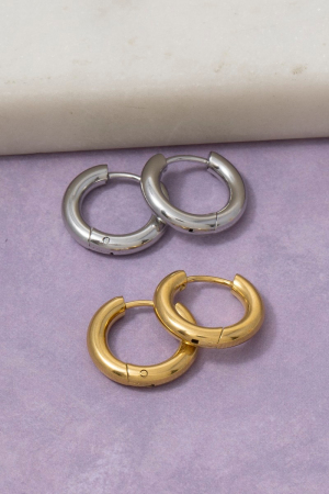 • This pair of hoop earrings adds a modern stainless steel chunky thick huggie style. Celebrate the art of accessorizing with this piece that effortlessly encapsulates modern trends.