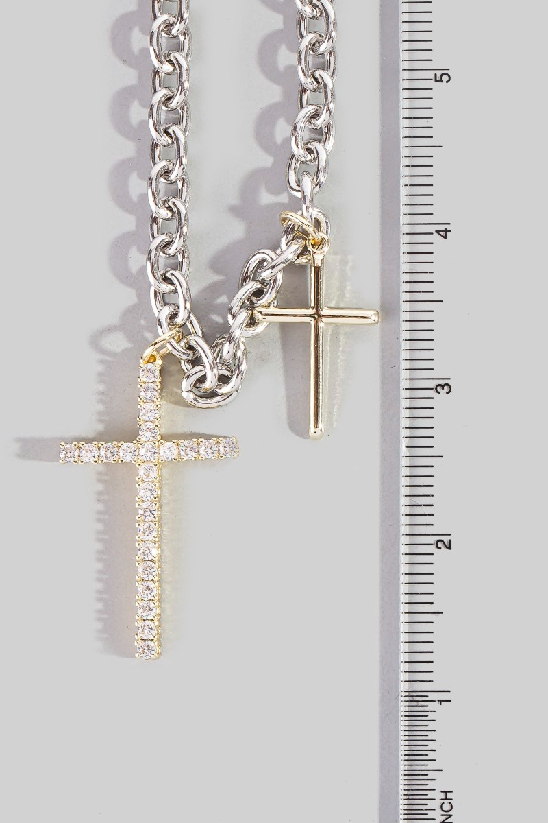 - This pendant necklace showcases a unique gold dipped two tone cubic zirconia pave cross style. Discover the perfect balance of subtlety and flair as this pendant necklace effortlessly completes your look.