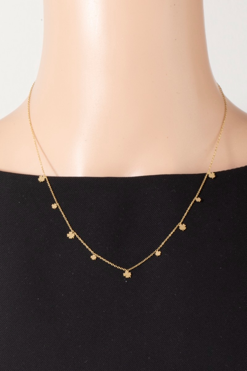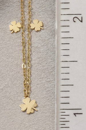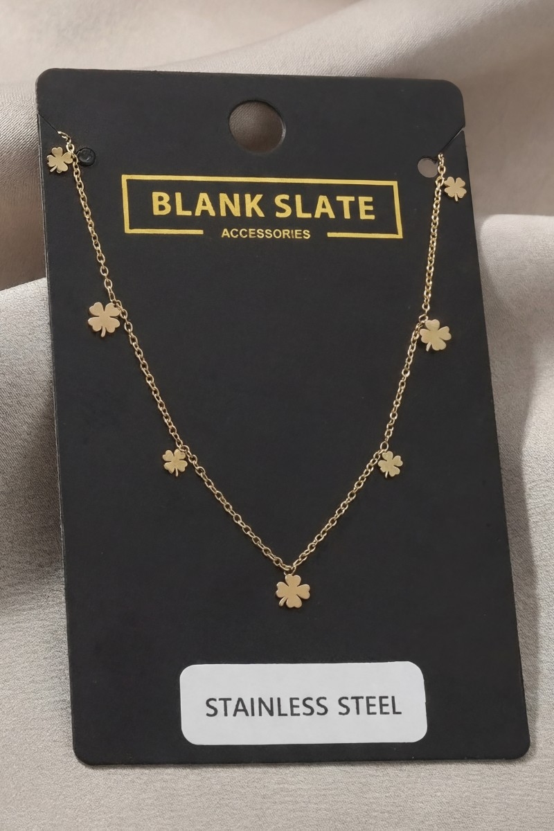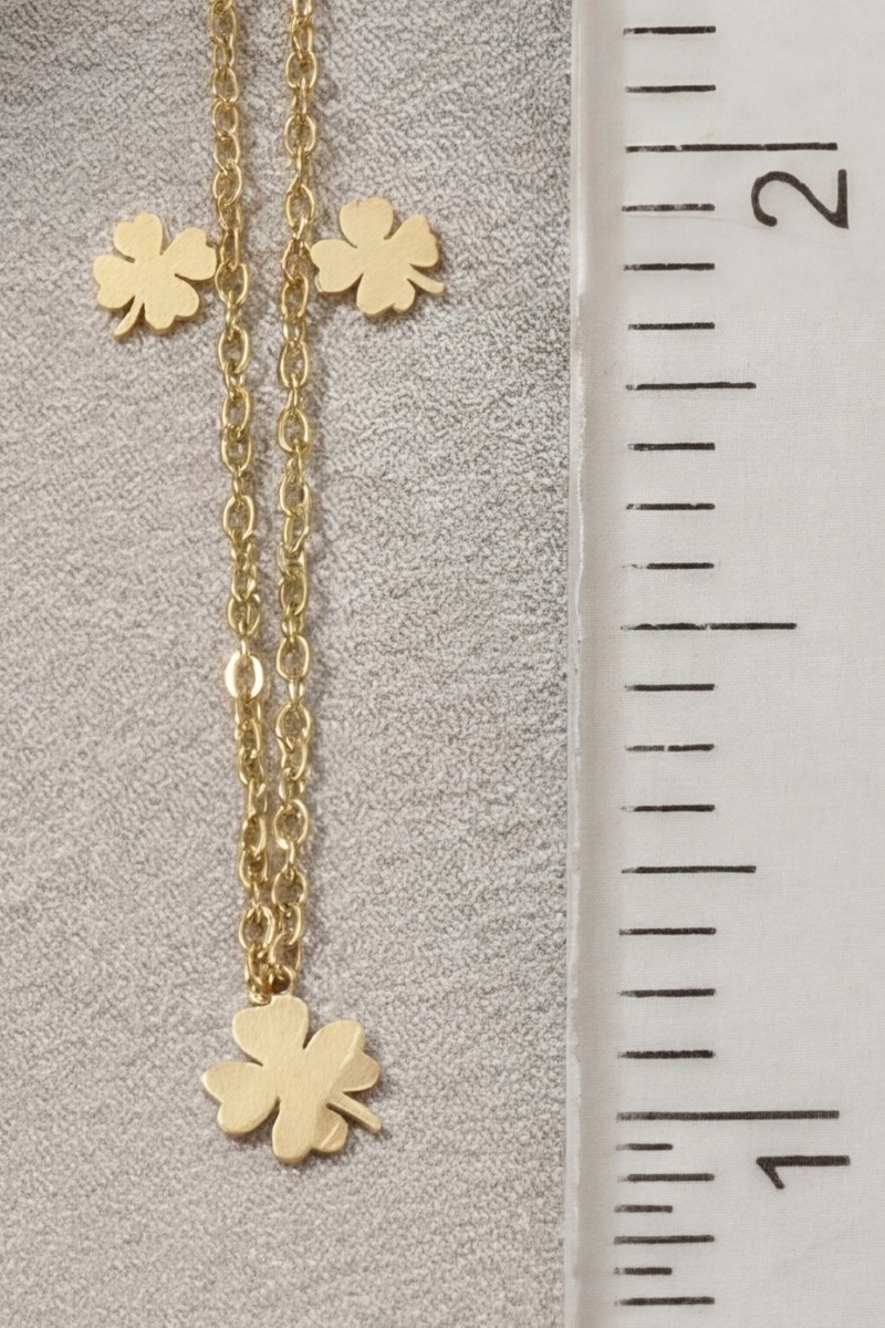 • This chain necklace features a fashionable stainless steel clover charms station necklace style. Experience the joy of accessorizing with this piece that effortlessly combines versatility and charm.
