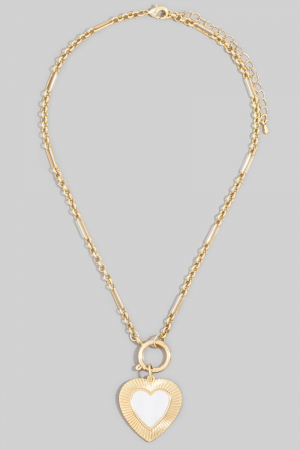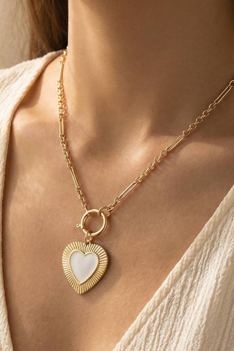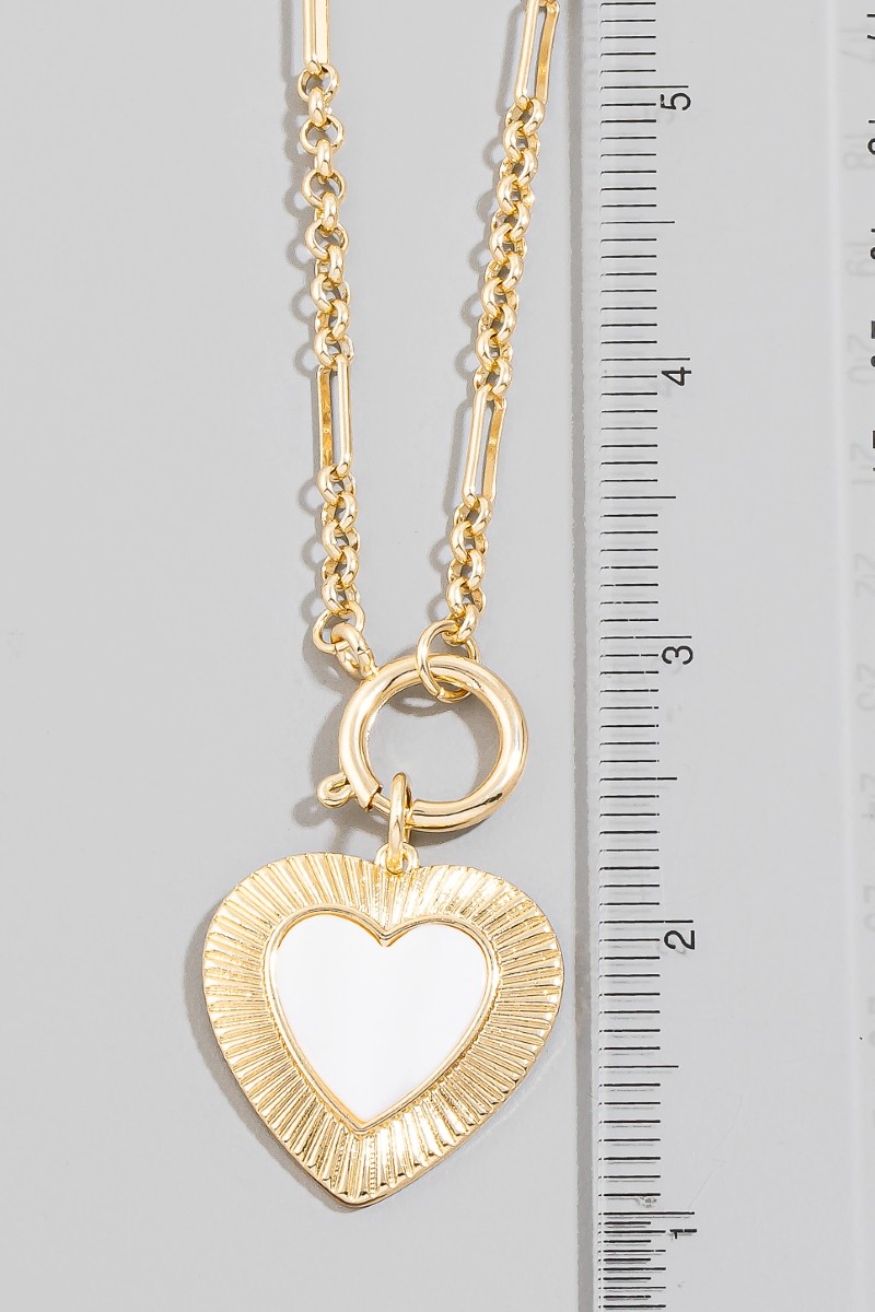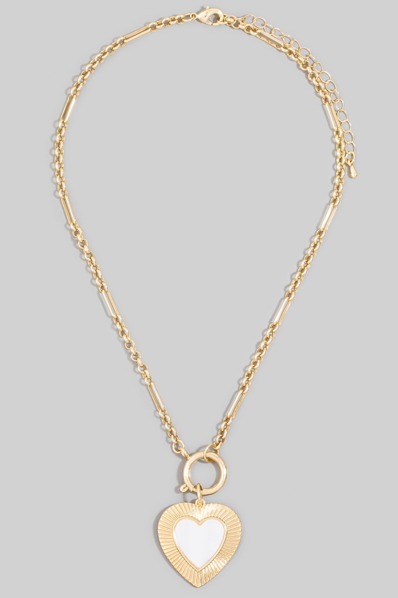 • This pendant necklace brings a stunning mother of pearl heart style. Celebrate individuality with this pendant necklace that effortlessly expresses your unique sense of style.