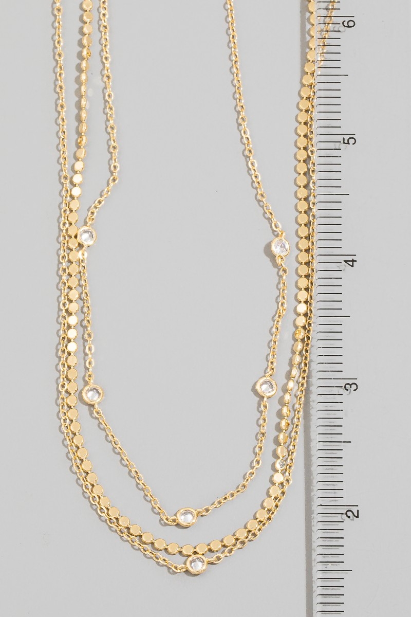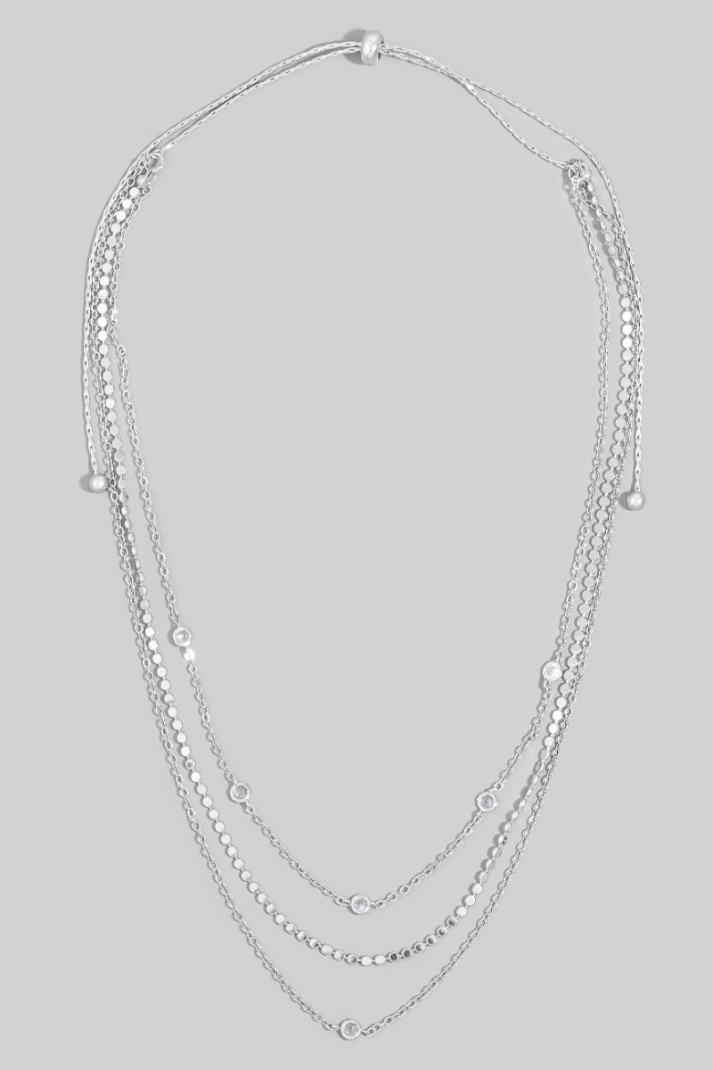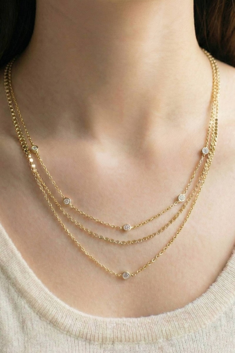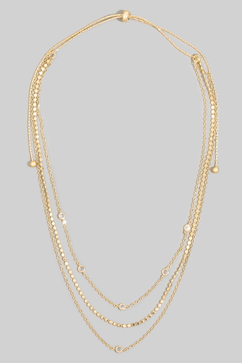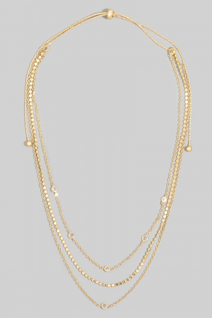 • This chain necklace features a fashionable dainty three layered chain adjustable necklace style. Discover the perfect balance of functionality and fashion.