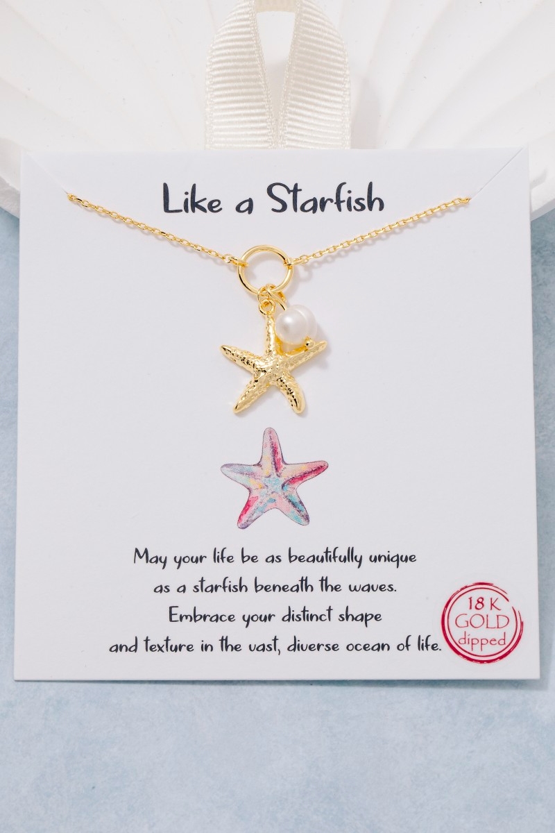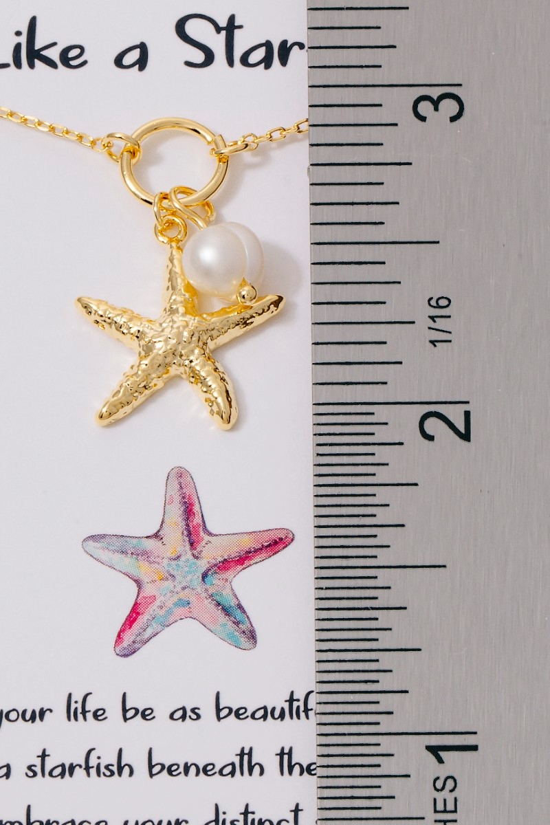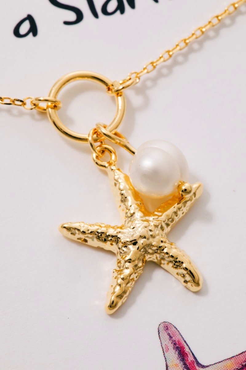 - This pendant necklace displays a fashionable gold dipped textured starfish and pearl style. Celebrate individual style with this versatile, eye-catching addition.