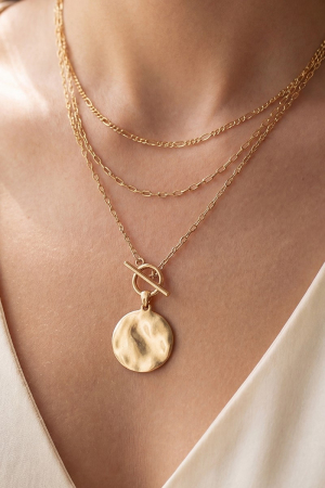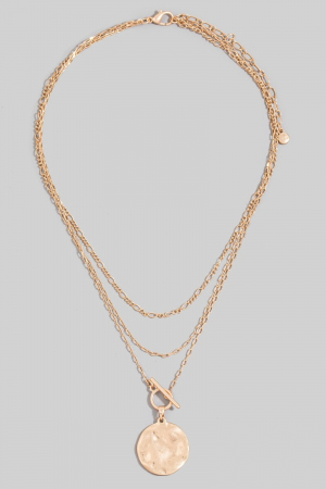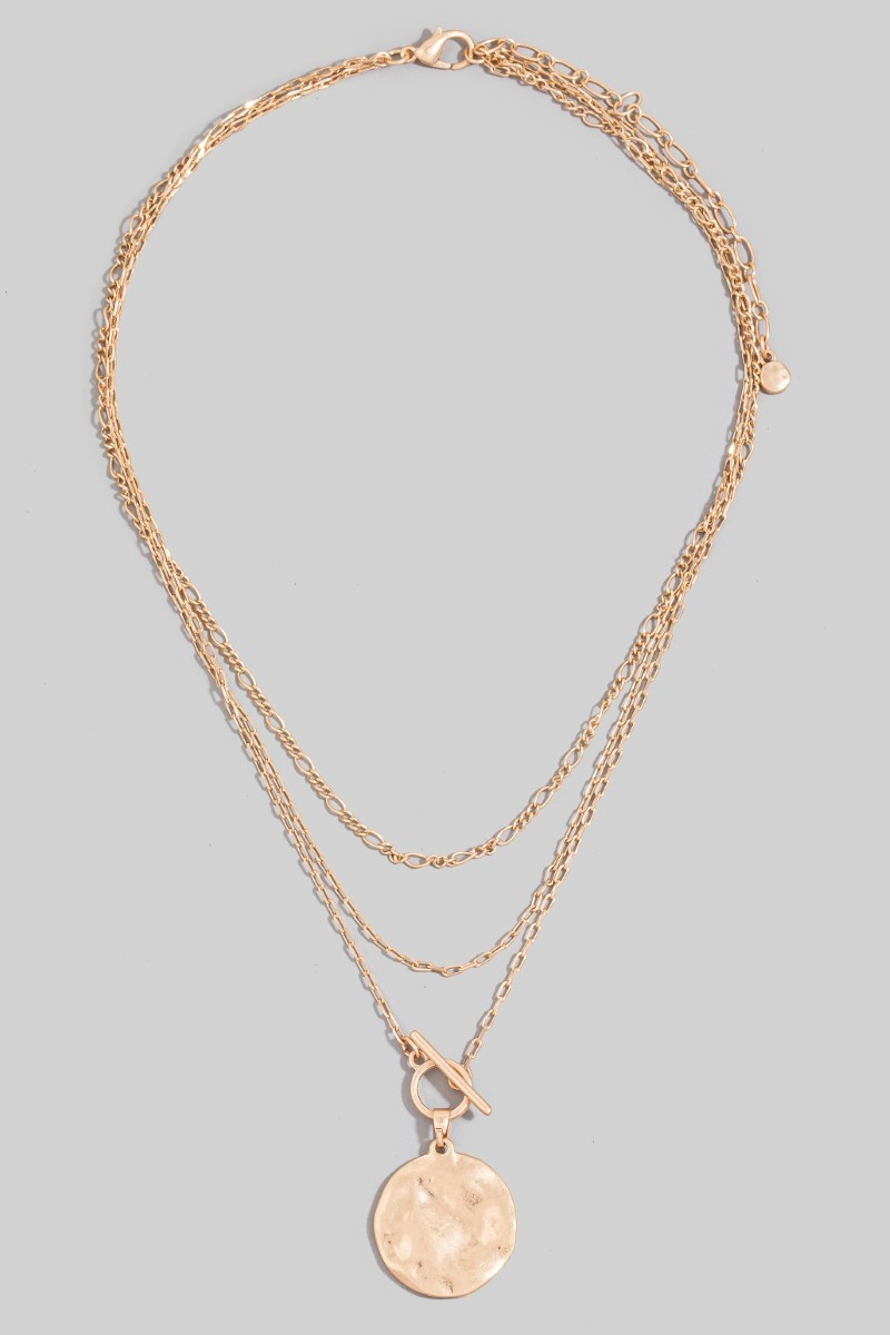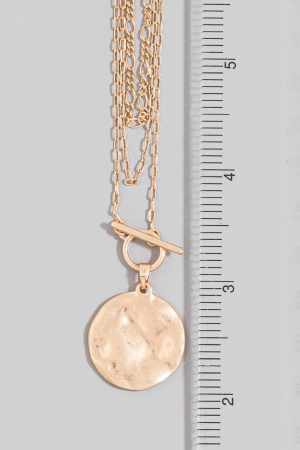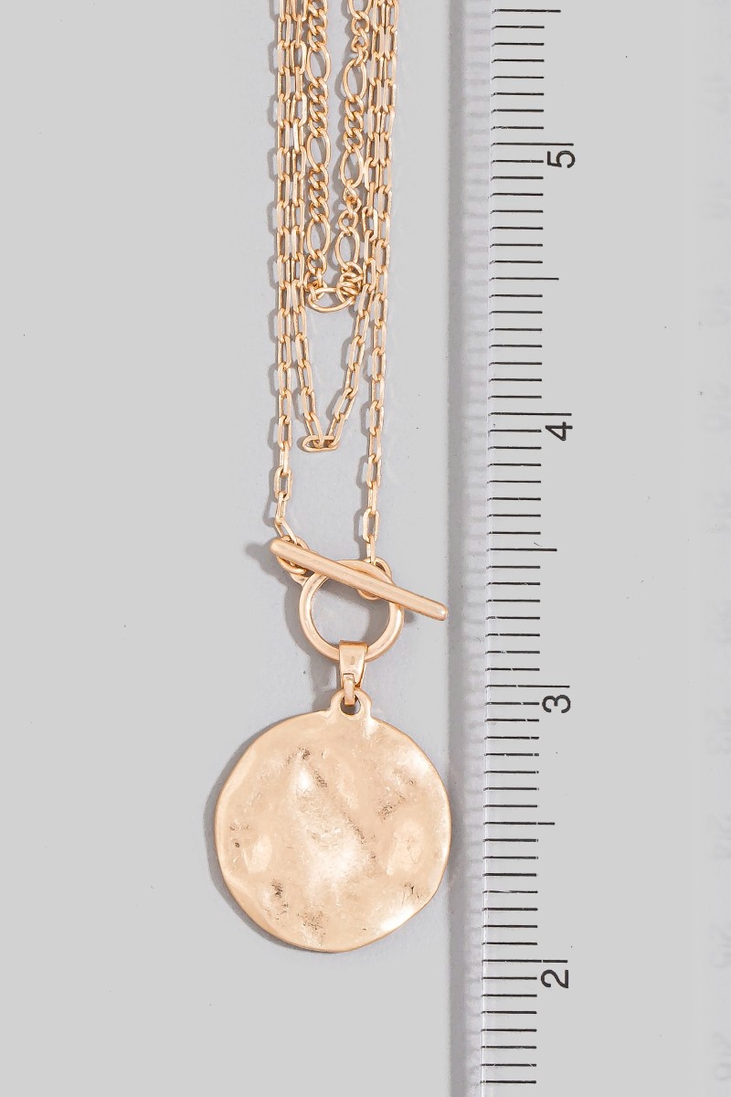 • This pendant necklace adds a modern dainty layered chian hammered disc style. Step into a world of refined taste as this pendant necklace effortlessly refines the details of your outfit.