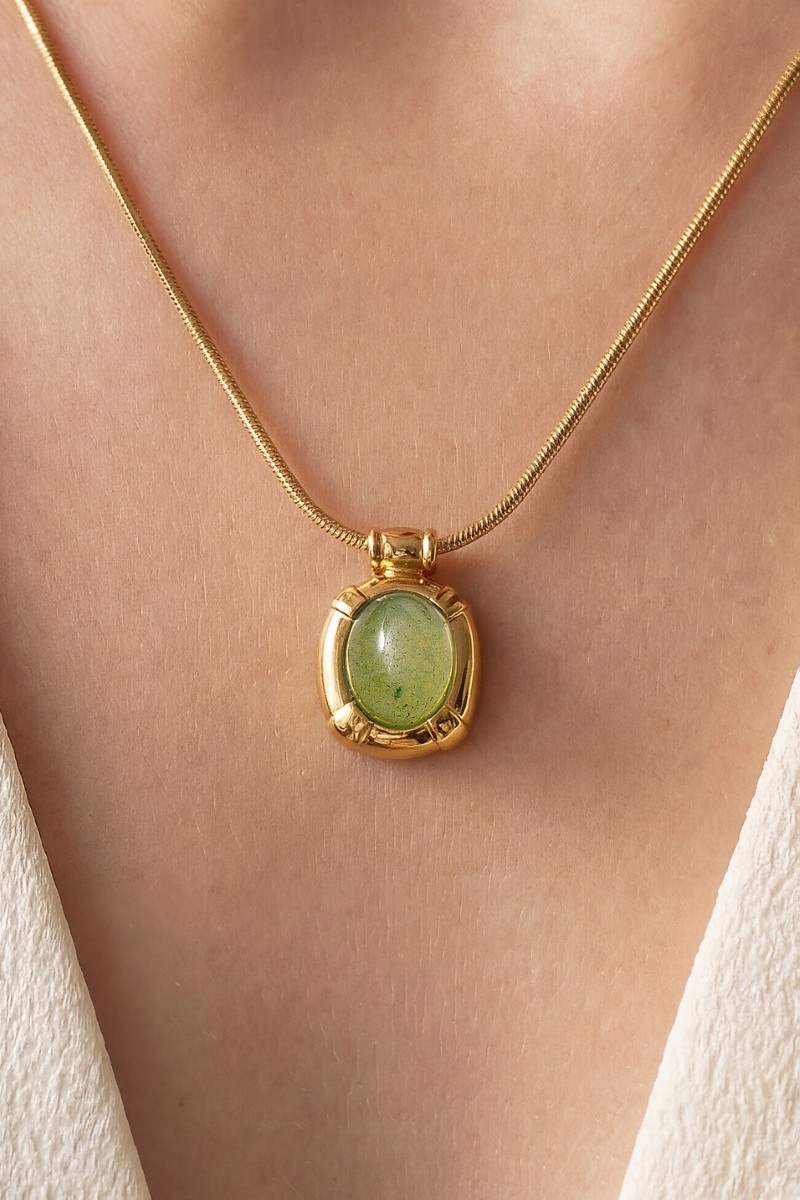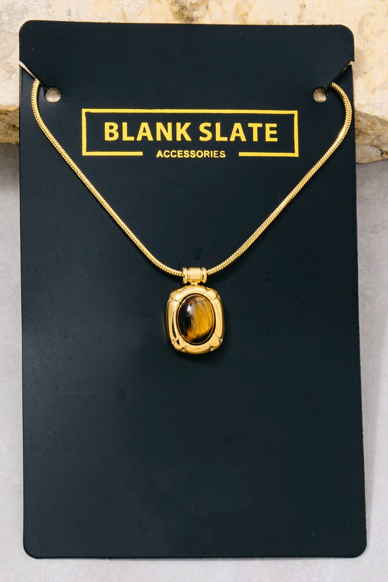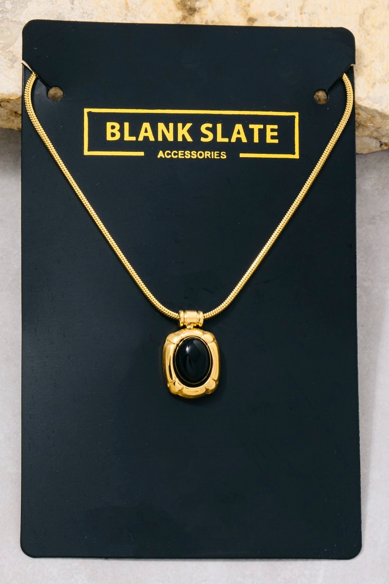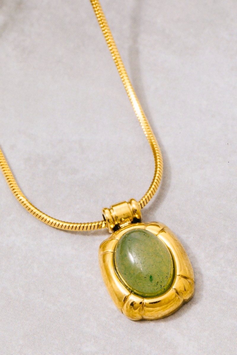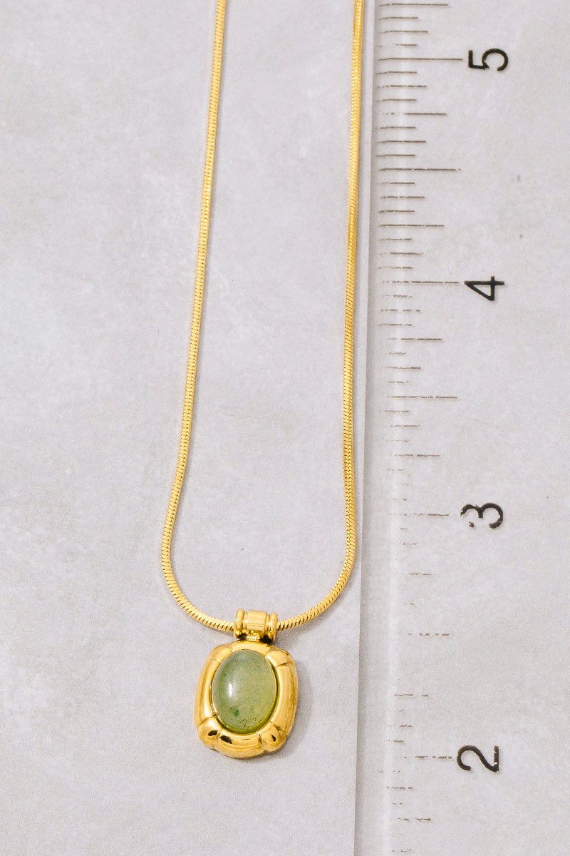 • This pendant necklace features a fashionable snake chain gold bezel stone style. Step into a world of refined taste as this pendant necklace effortlessly refines the details of your outfit.