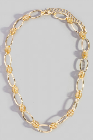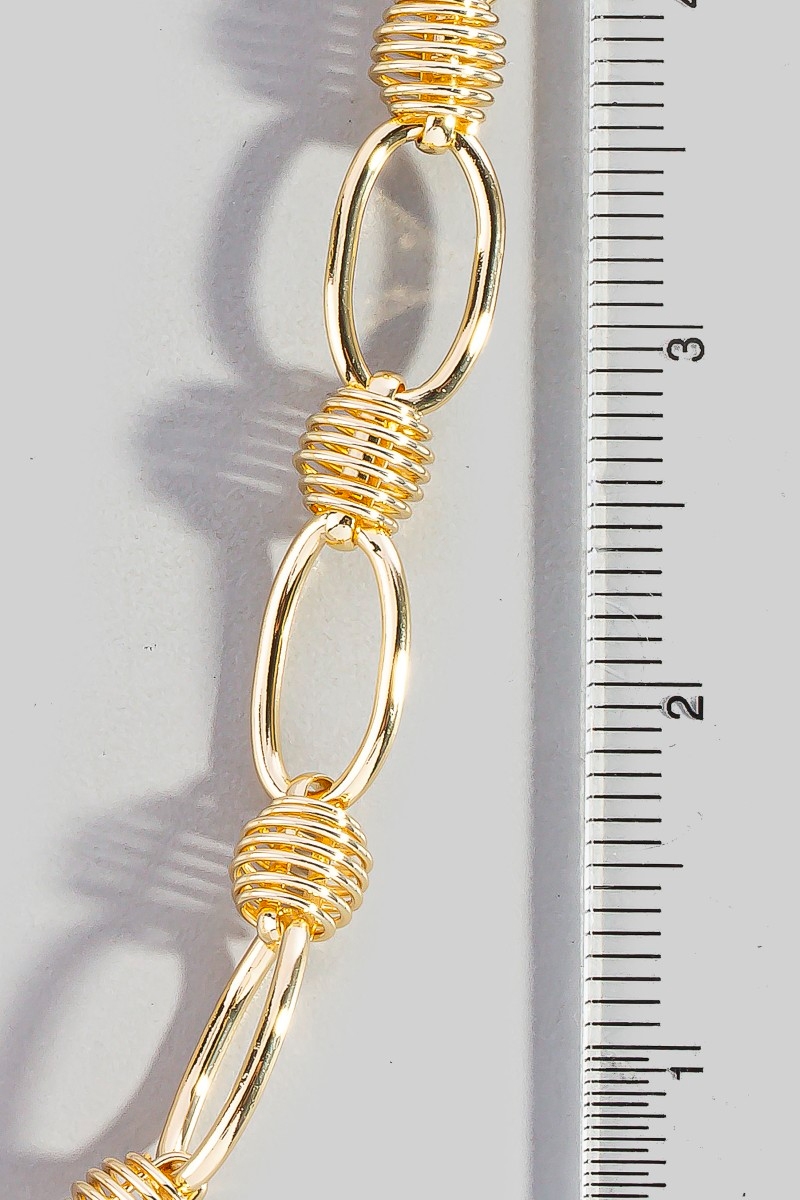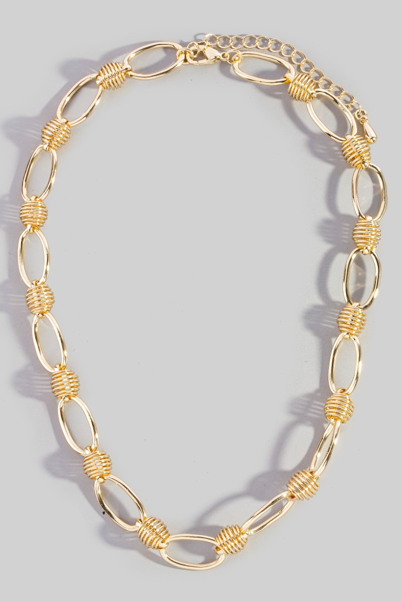 • This chain necklace introduces a stunning coiled connector beads oval link style. Unveil modern elegance with this subtly intricate chain necklace.