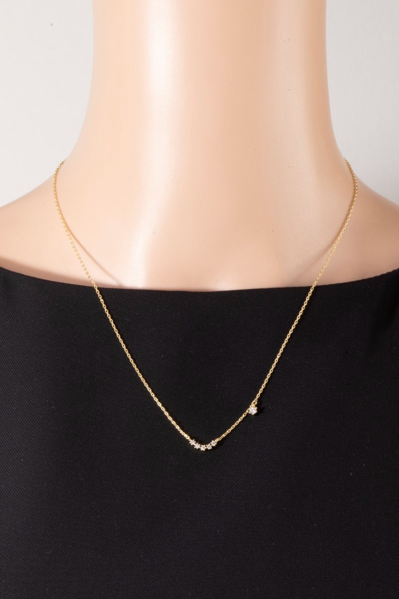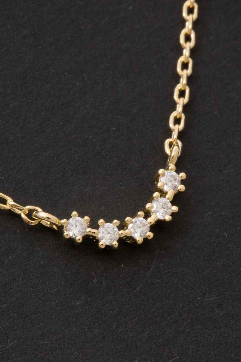 - This chain necklace showcases a timeless gold dipped cubic zirconia bar asymmetric style. Delight in the nuanced details that make this chain necklace a testament to fine design and impeccable taste.