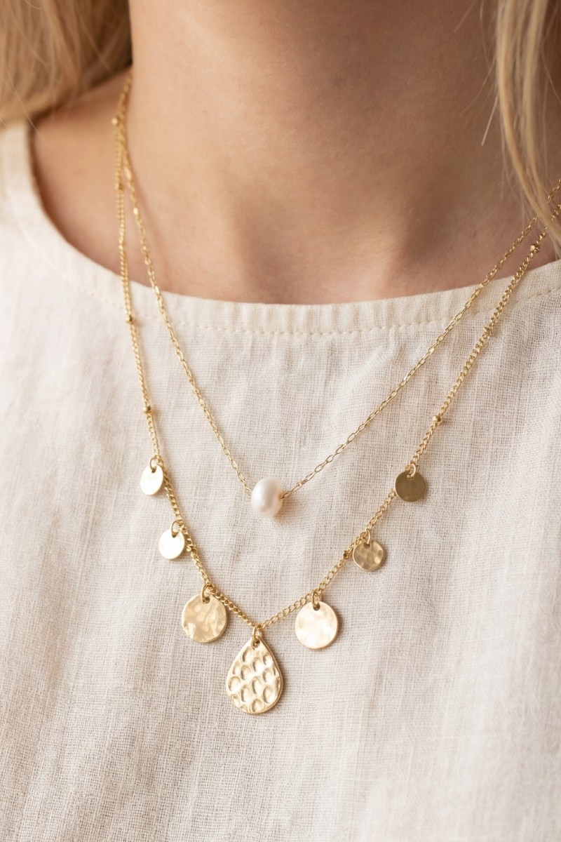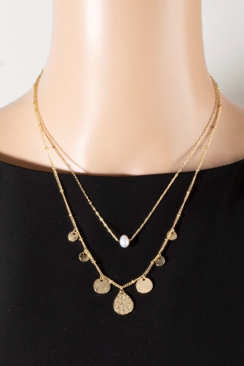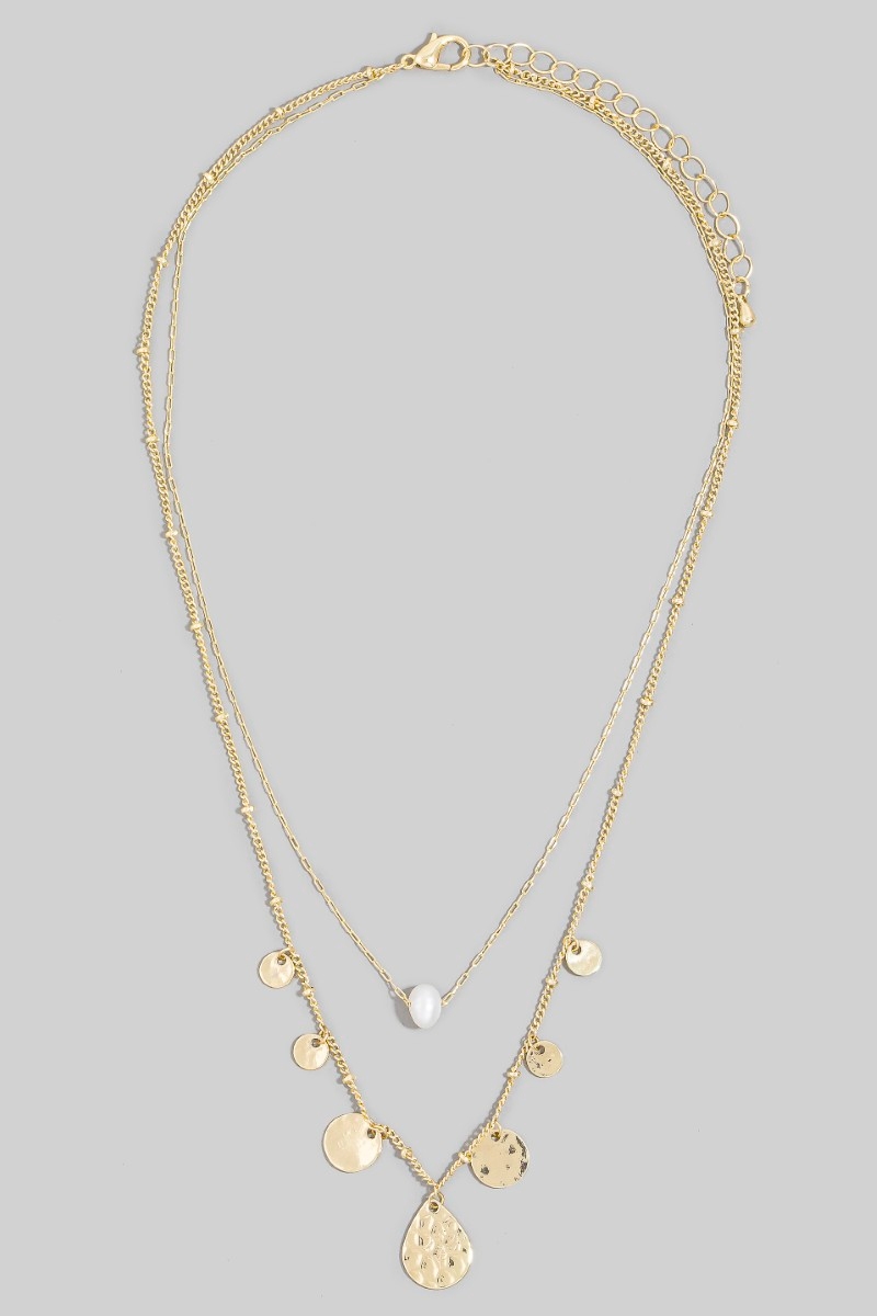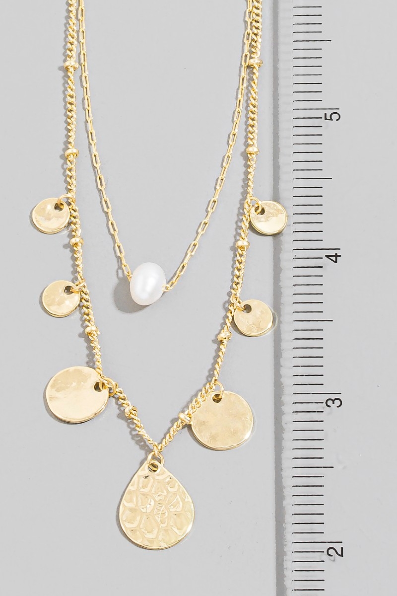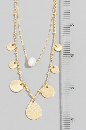 - This pendant necklace displays a vibrant gold layered coin pearl style. Celebrate individuality with this pendant necklace that effortlessly expresses your unique sense of style.