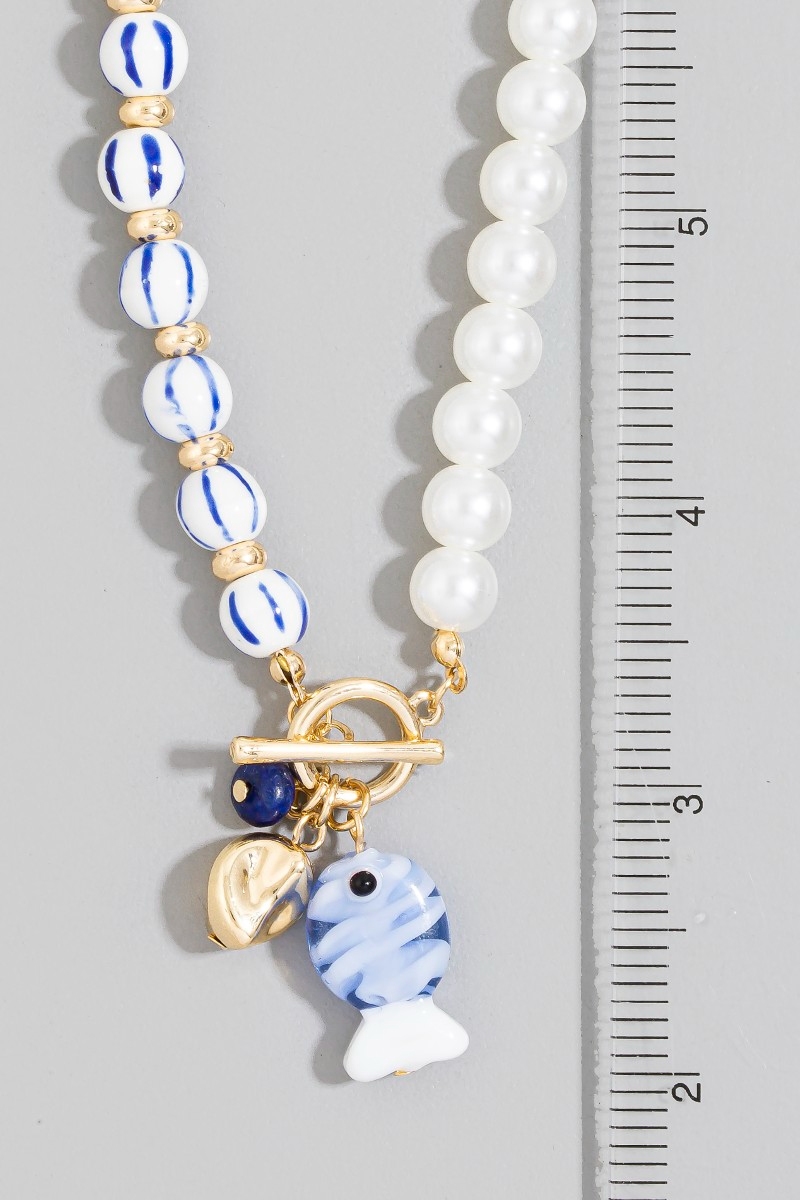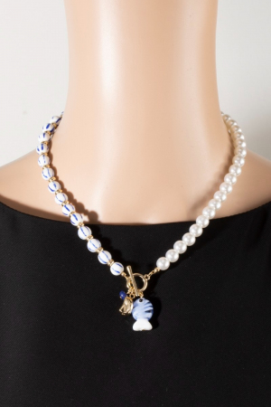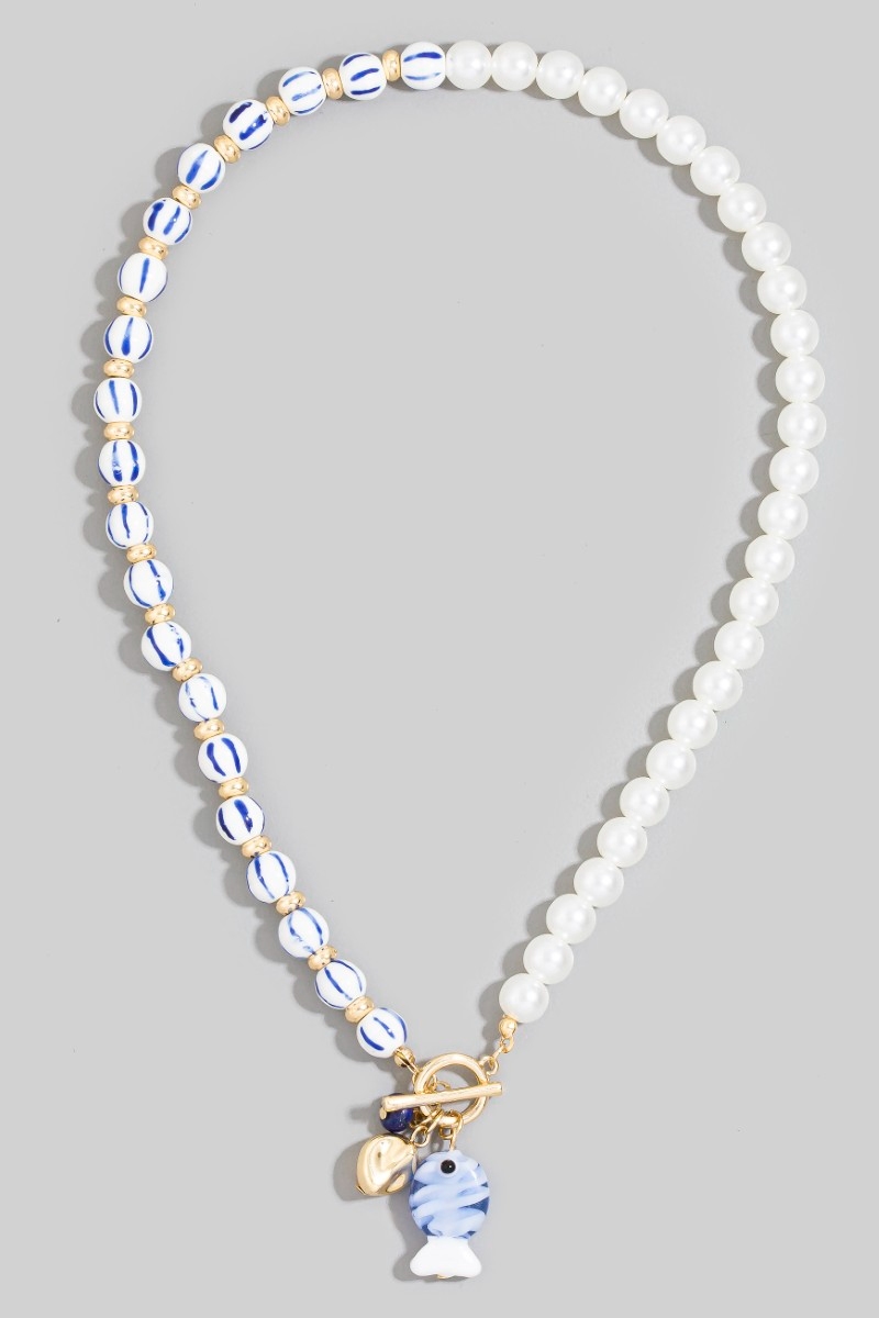 • This pendant necklace displays a vibrant blue stripe pearl toggle fish style. Savor the allure of detailed craftsmanship in this exquisite pendant necklace.
