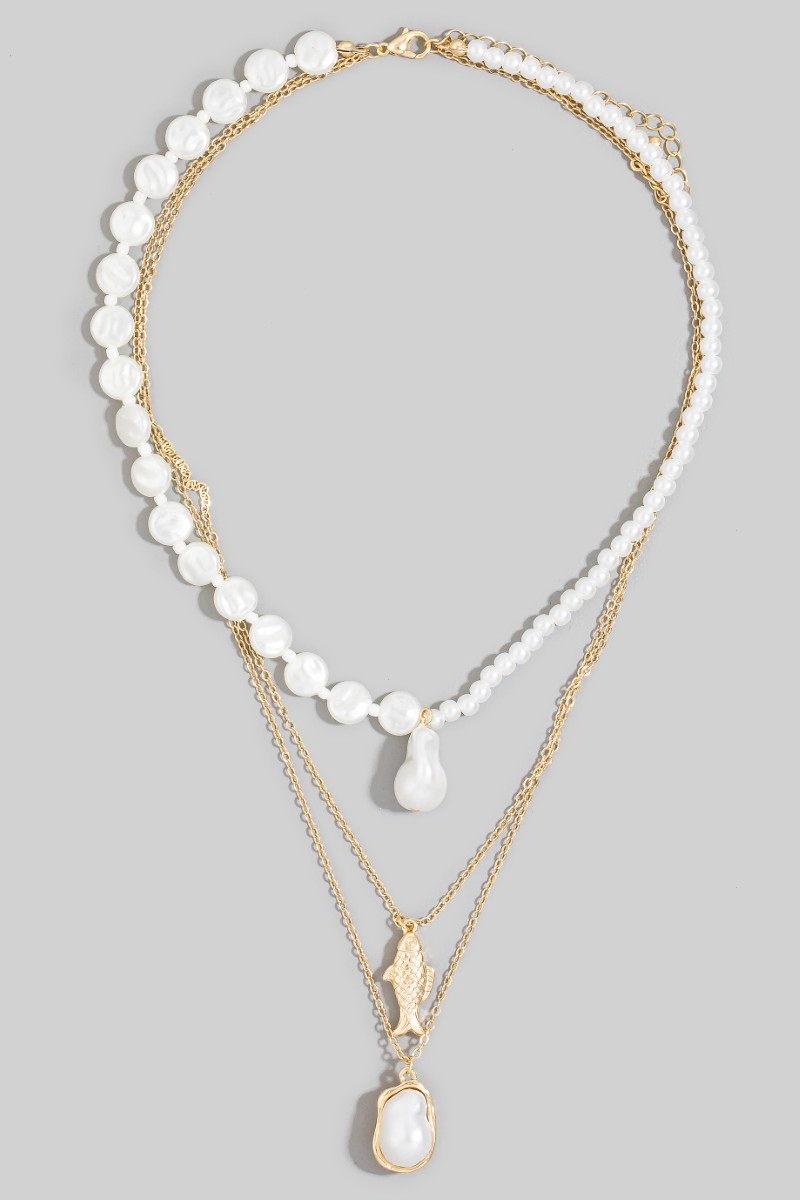 - This pendant necklace adds a modern layered pearl chain fish style. Celebrate individual style with this versatile, eye-catching addition.