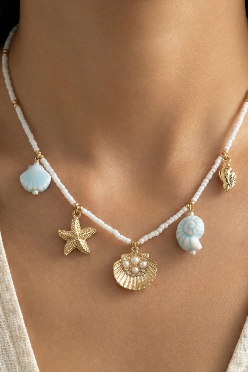 - This pendant necklace introduces a stunning sealife charms beaded style. Celebrate the art of accessorizing with this piece that effortlessly encapsulates modern trends.
