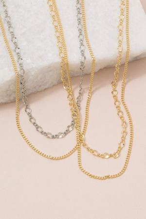 Gold Layered Curb And Cable Chain Necklace