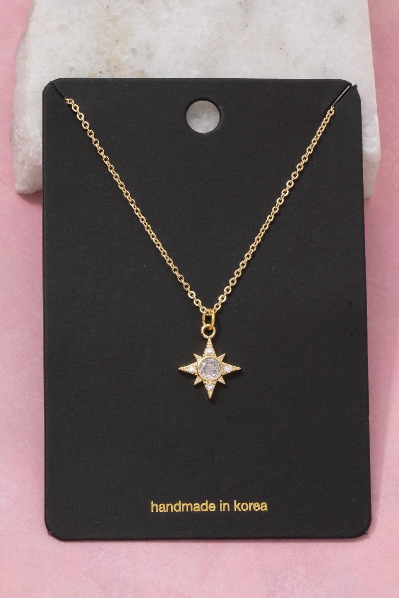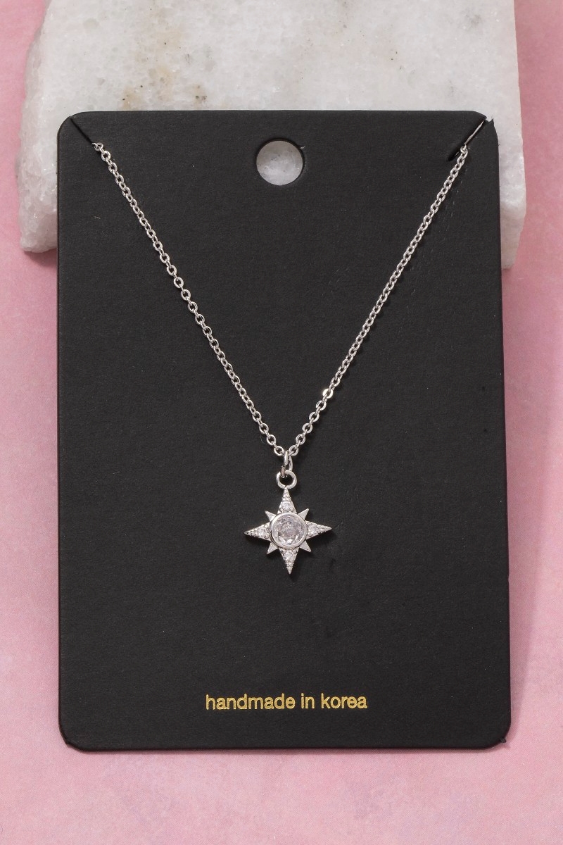 • This pendant necklace introduces a stunning cz north star style. Unveil modern elegance with this subtly intricate pendant necklace.