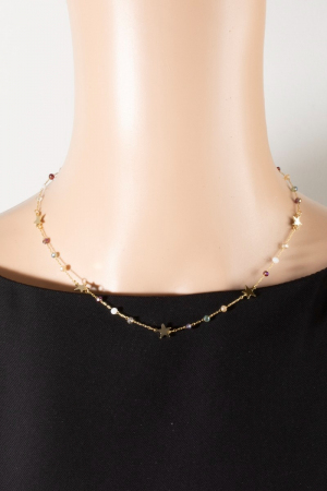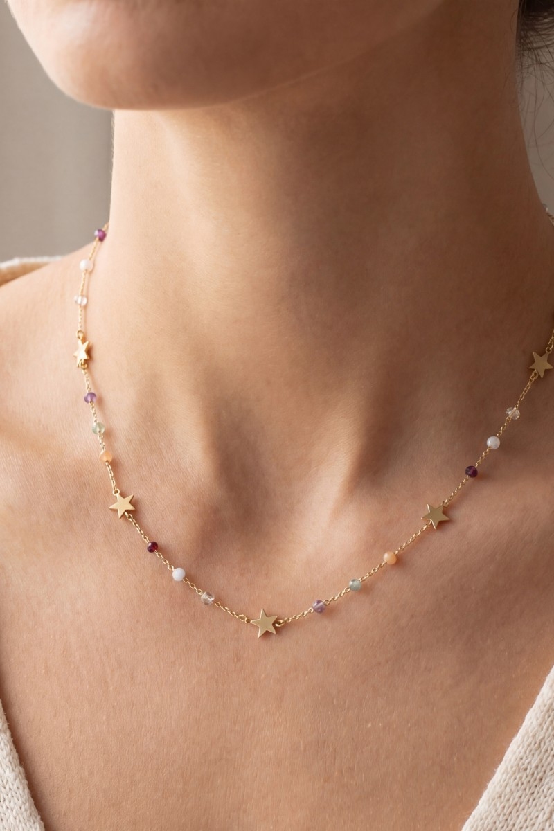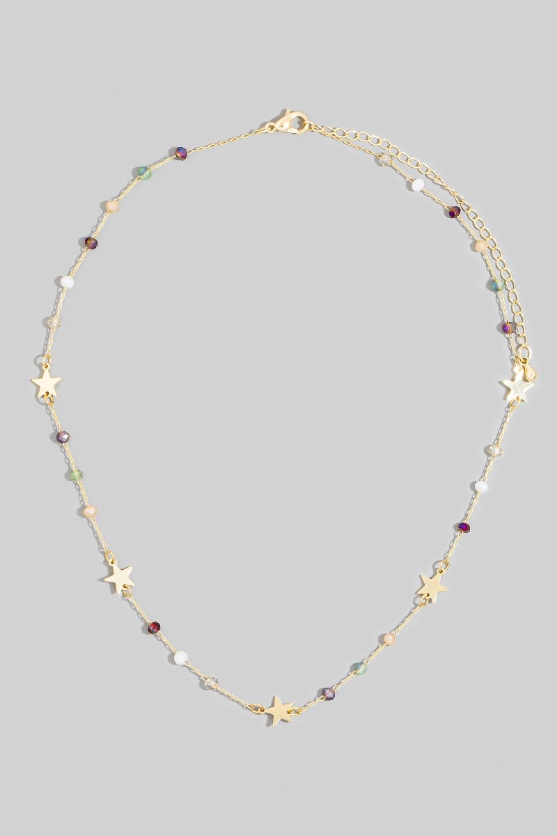 - This necklace brings a unique gold star charm beaded chain choker style. Celebrate individuality with this necklace that effortlessly expresses your unique sense of style.