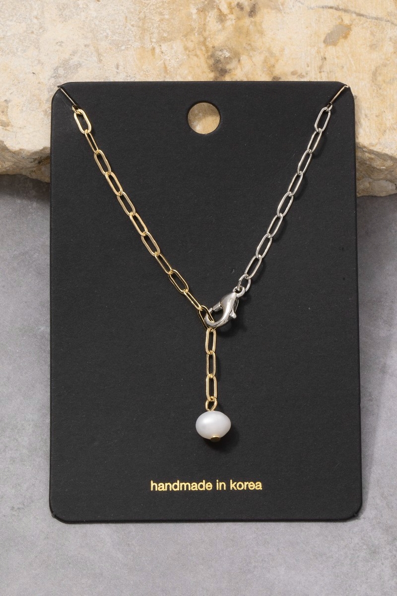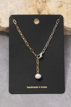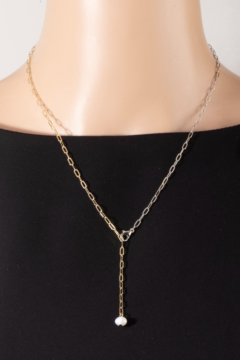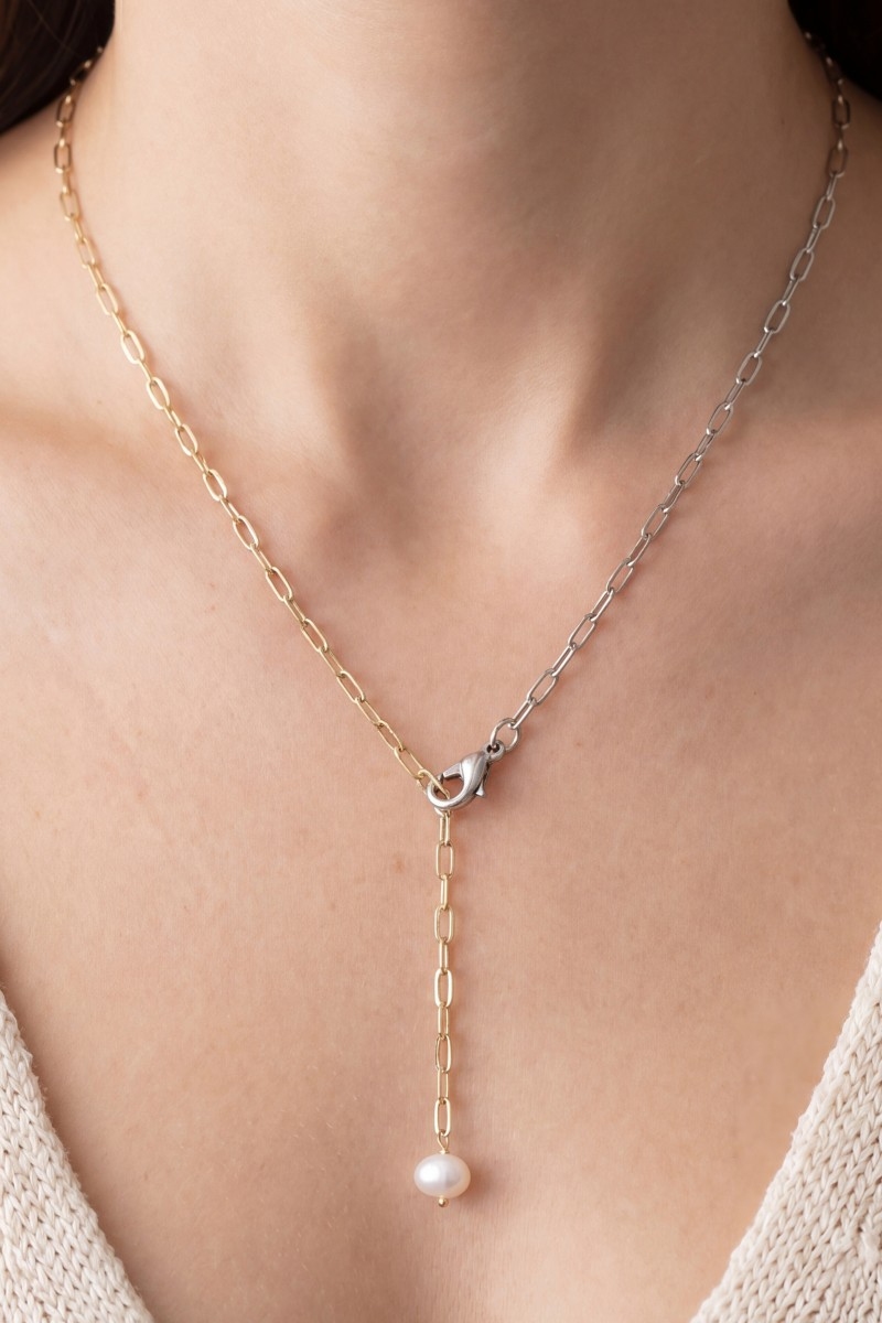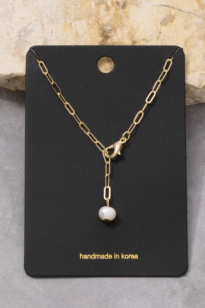 • This necklace brings a stunning gold paperclip chain pearl drop lariat style. Unveil modern elegance with this subtly intricate necklace.