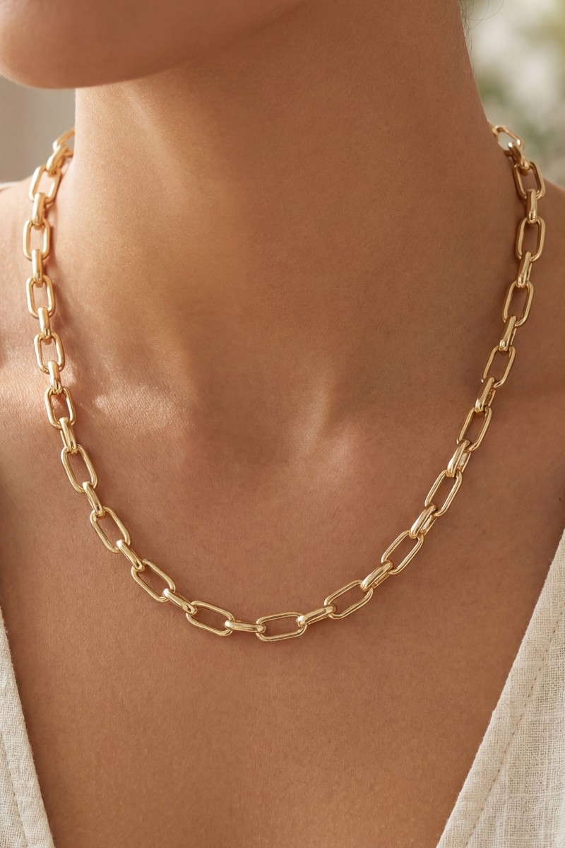 - This chain necklace displays a vibrant paperclip chain link style. Experience the joy of accessorizing with this piece that effortlessly combines versatility and charm.