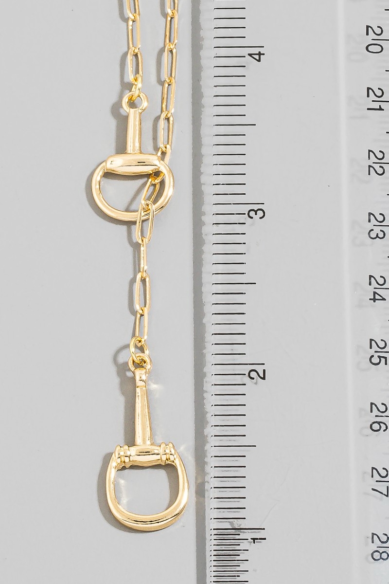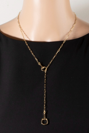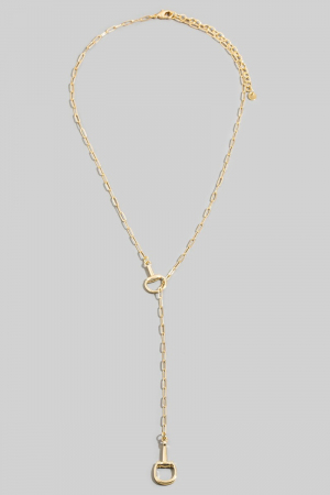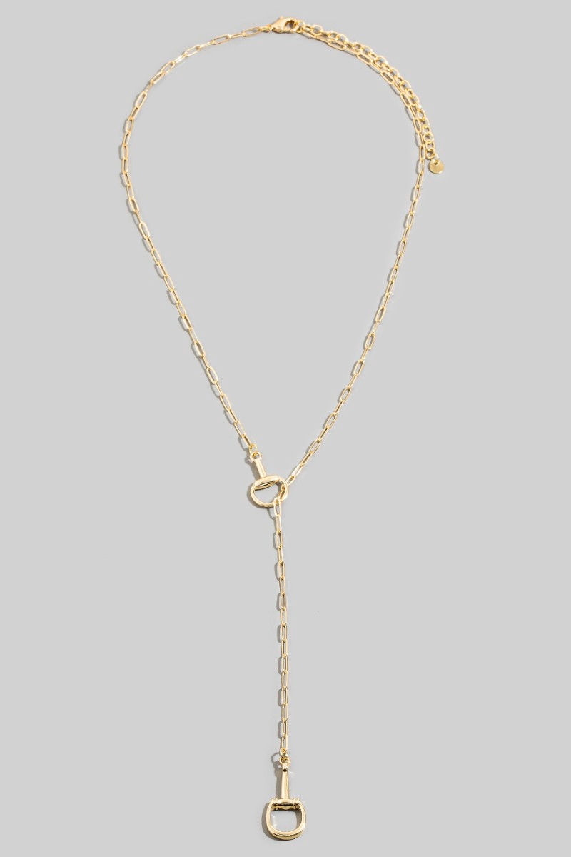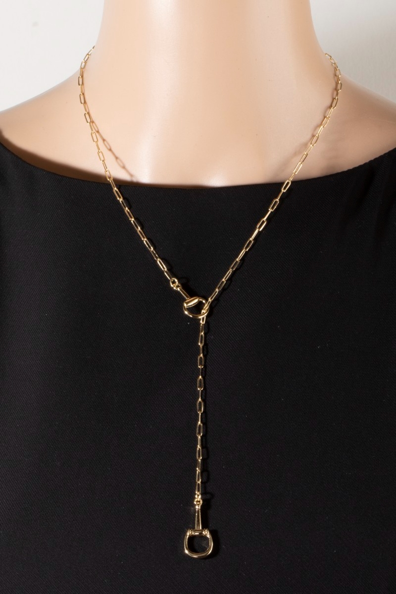 - This chain necklace introduces a stunning gold horsebit lariat y style. Discover the perfect balance of subtlety and flair as this chain necklace effortlessly completes your look.