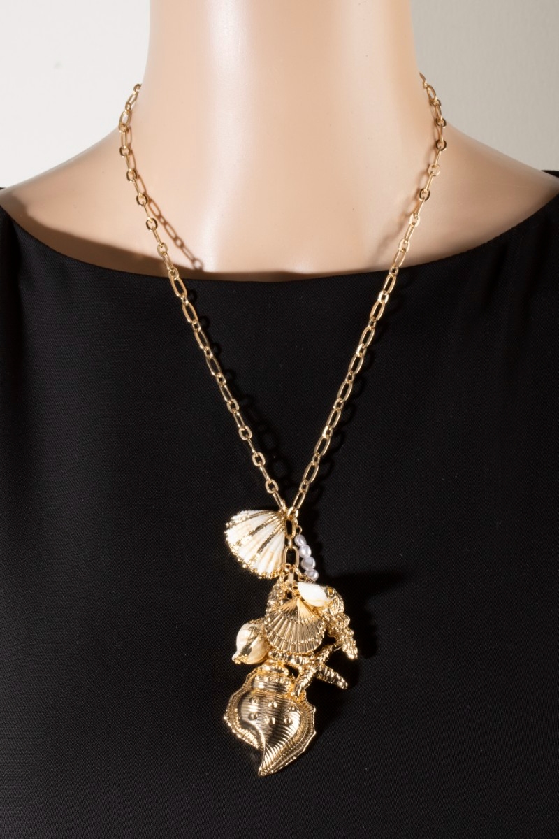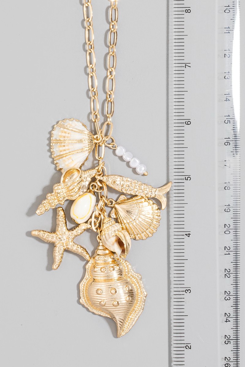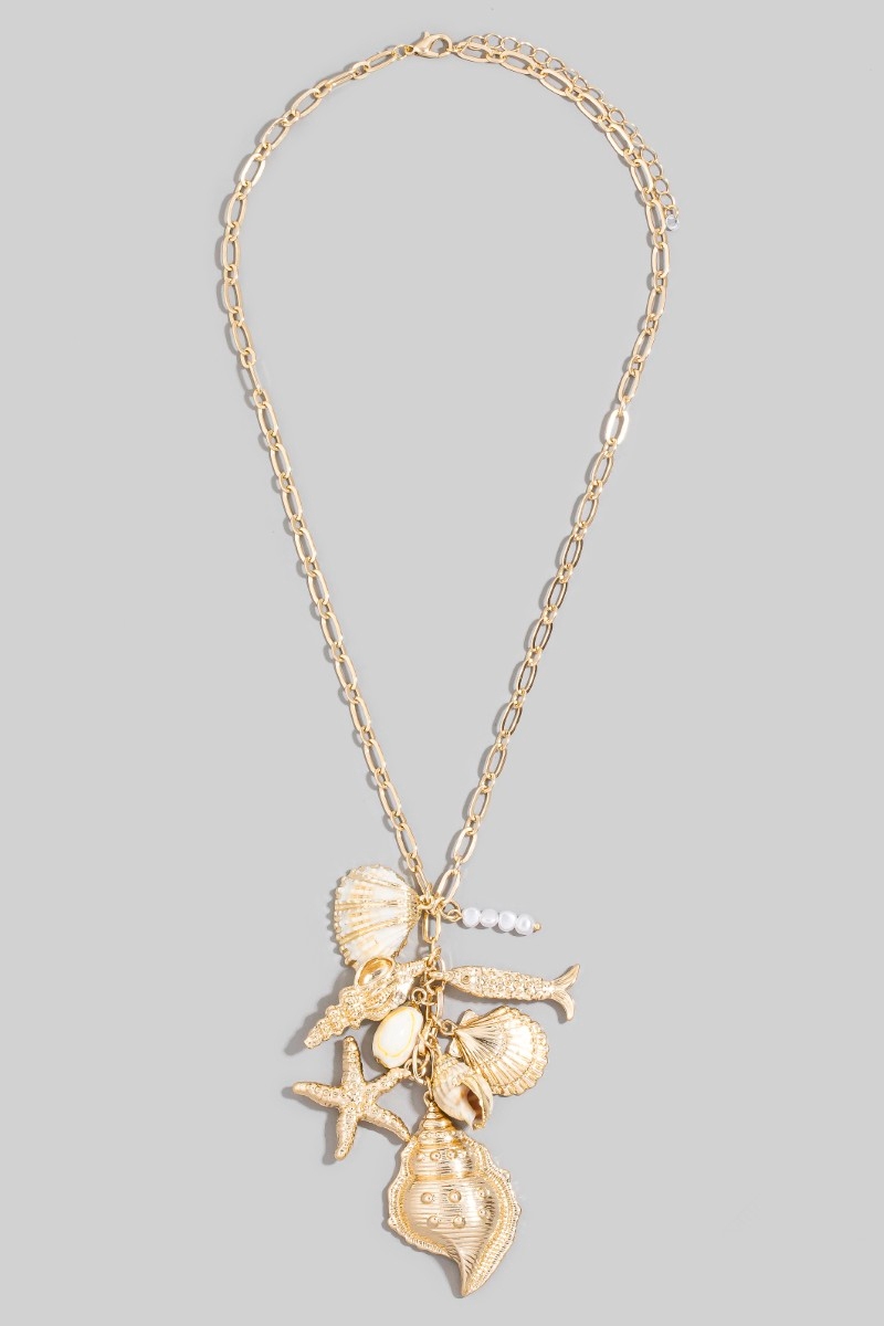 - This chain necklace brings a stunning gold sea charm cluster style. Witness the transformative power of accessories as this piece effortlessly redefines your fashion narrative.