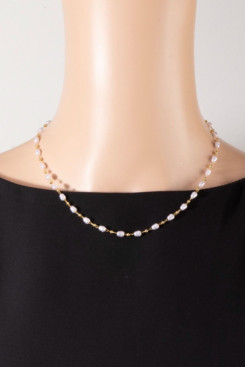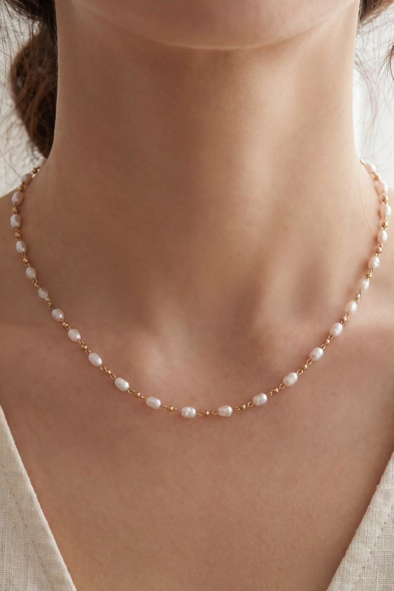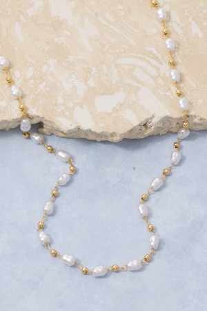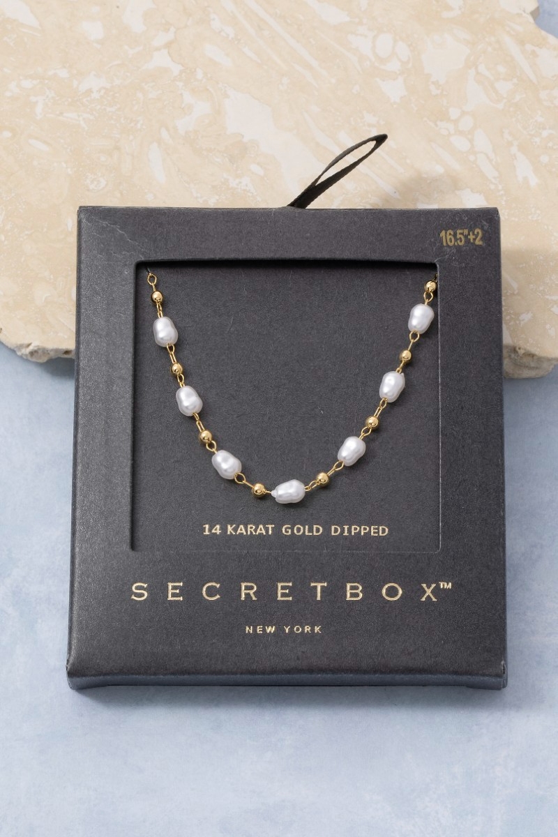 - This necklace displays a fashionable 14k gold dipped pearl and bead station style. Witness the perfect fusion of style and functionality as this necklace effortlessly complements your lifestyle.