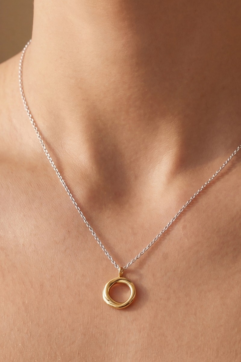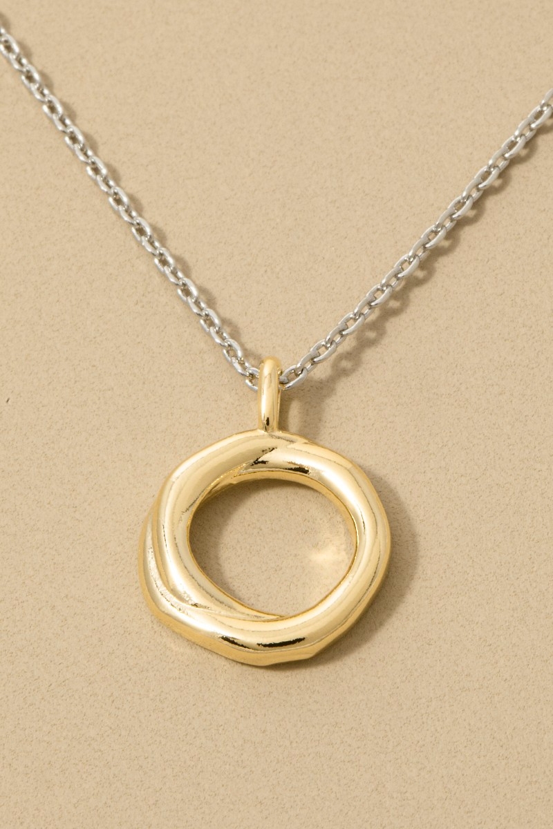 • This pendant necklace features a fashionable 18k gold twisted circle pendant two tone necklace style. Immerse yourself in the details of design, as this pendant necklace effortlessly becomes a conversation starter.