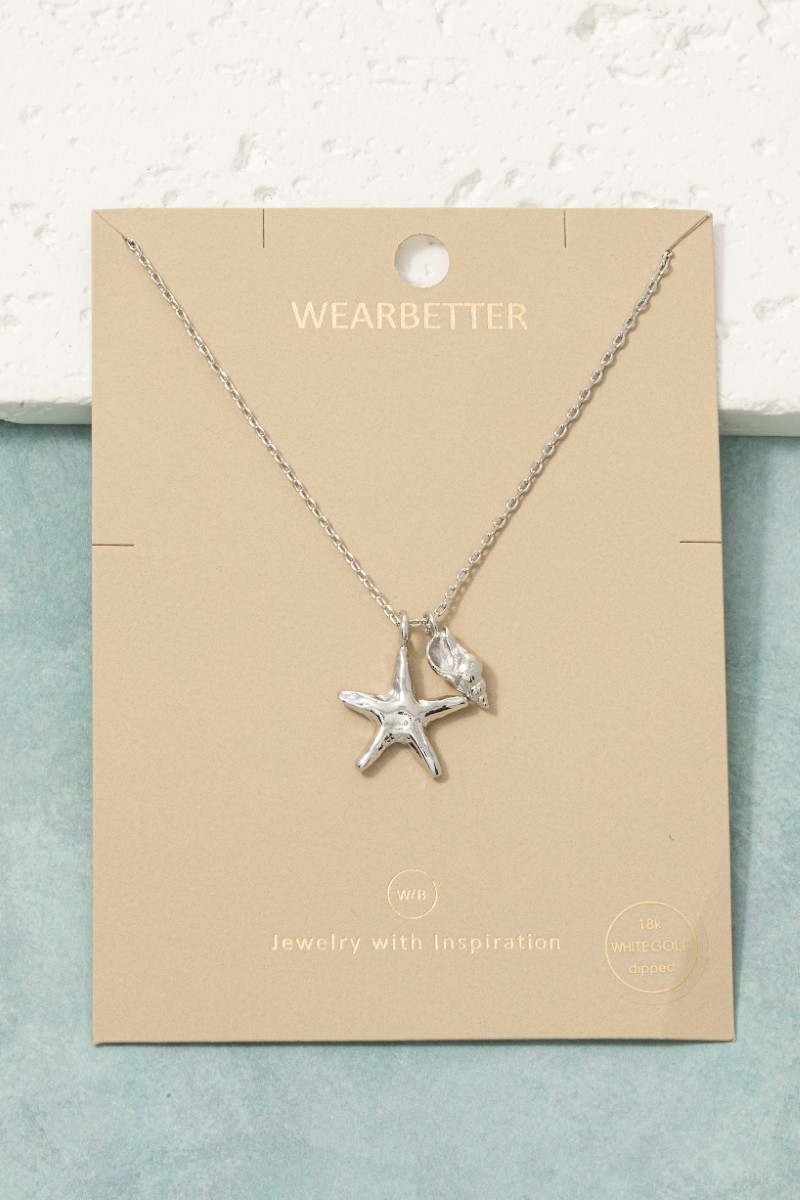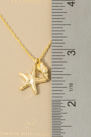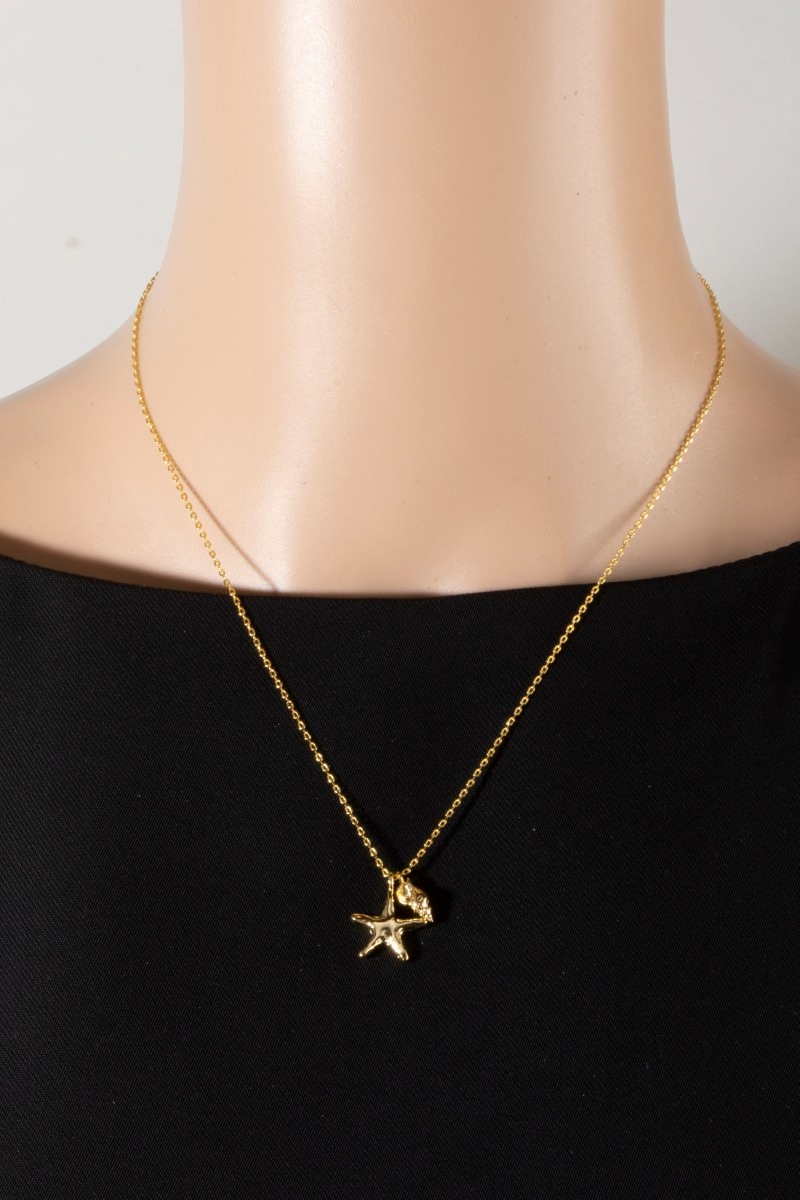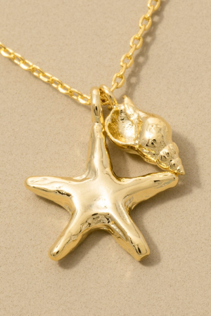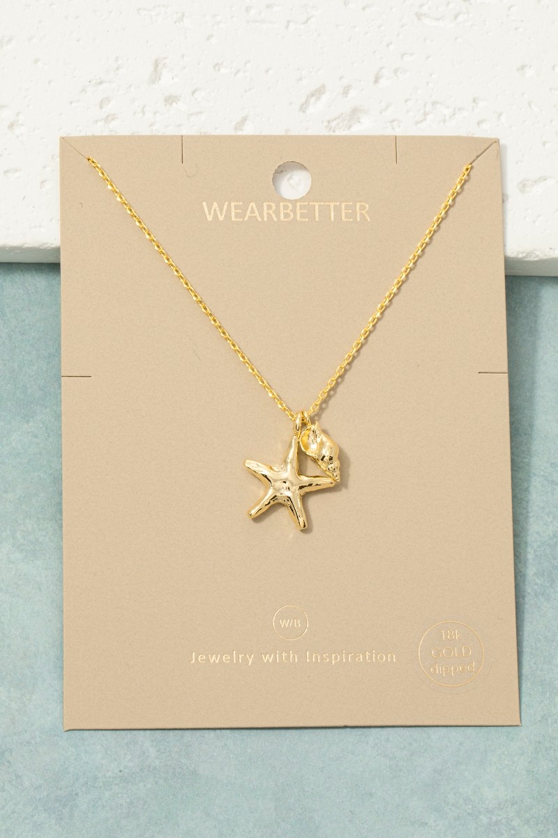 - This pendant necklace showcases a unique 18k gold starfish shell charm style. Experience refined sophistication with this understated yet stylish piece.