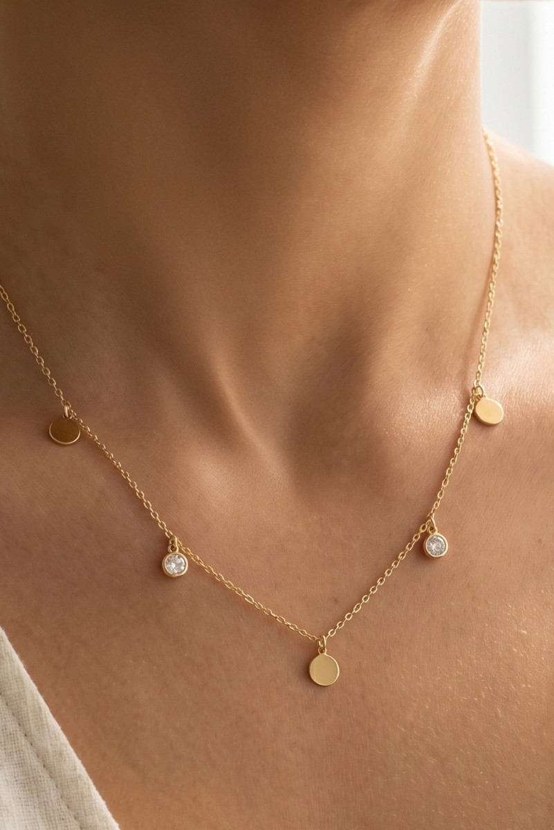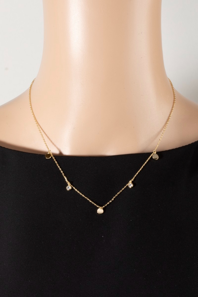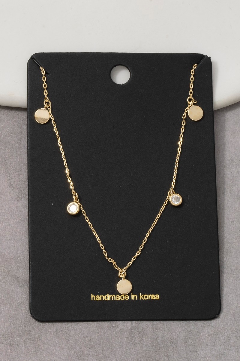 Cz Circle Disc Station Chain Necklace