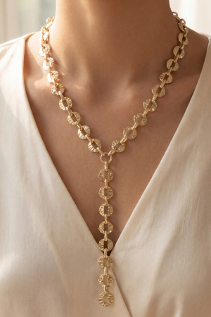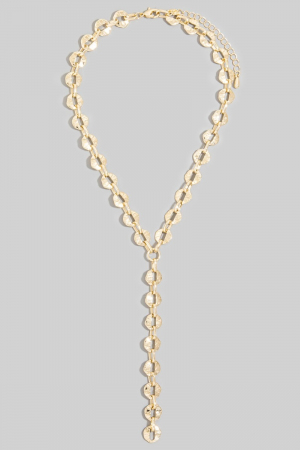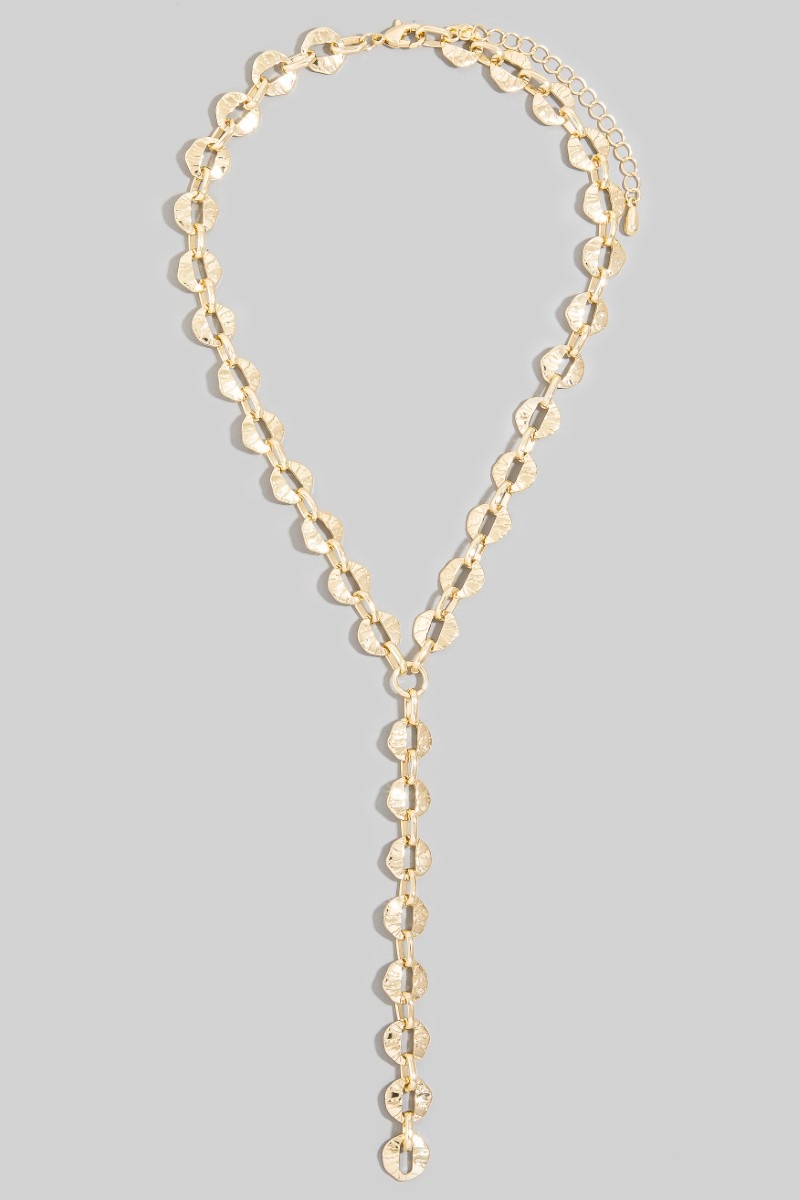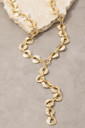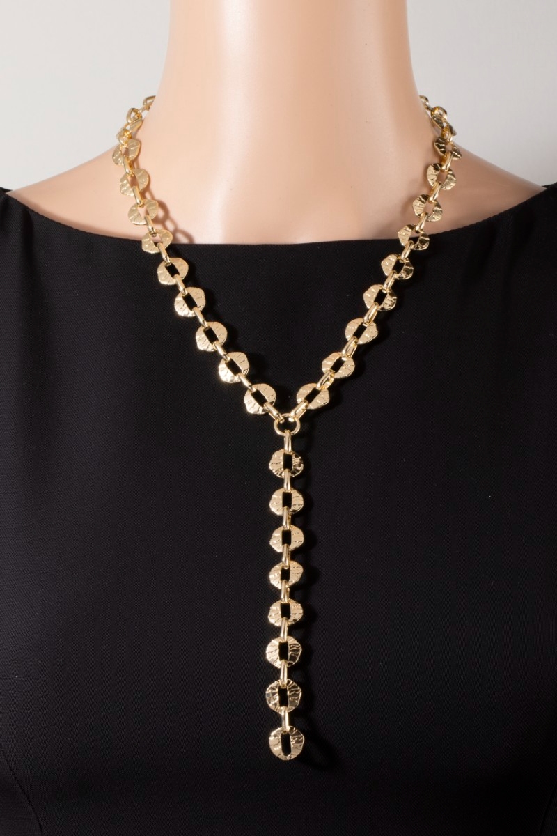- This necklace introduces a stunning hammered coin disc lariat y- style. Celebrate individuality with this necklace that effortlessly expresses your unique sense of style.