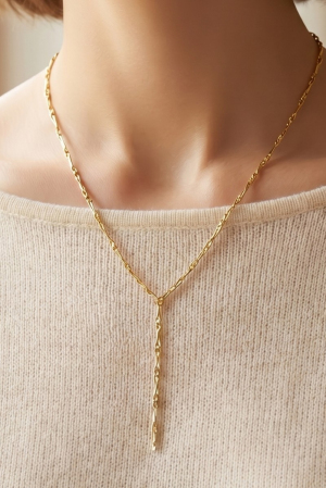 - This necklace introduces a stunning twisted bar link lariat y- style. Step into a world of refined taste as this necklace effortlessly refines the details of your outfit.
