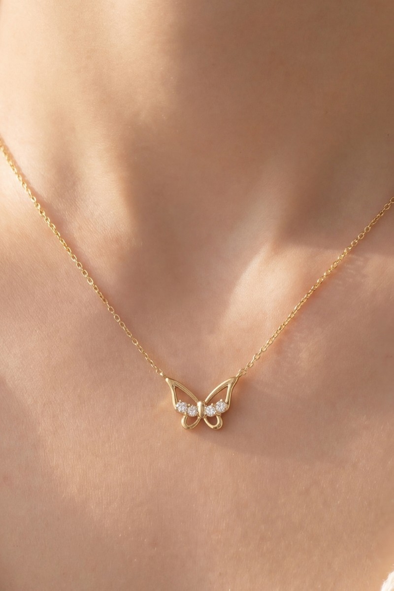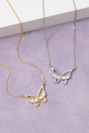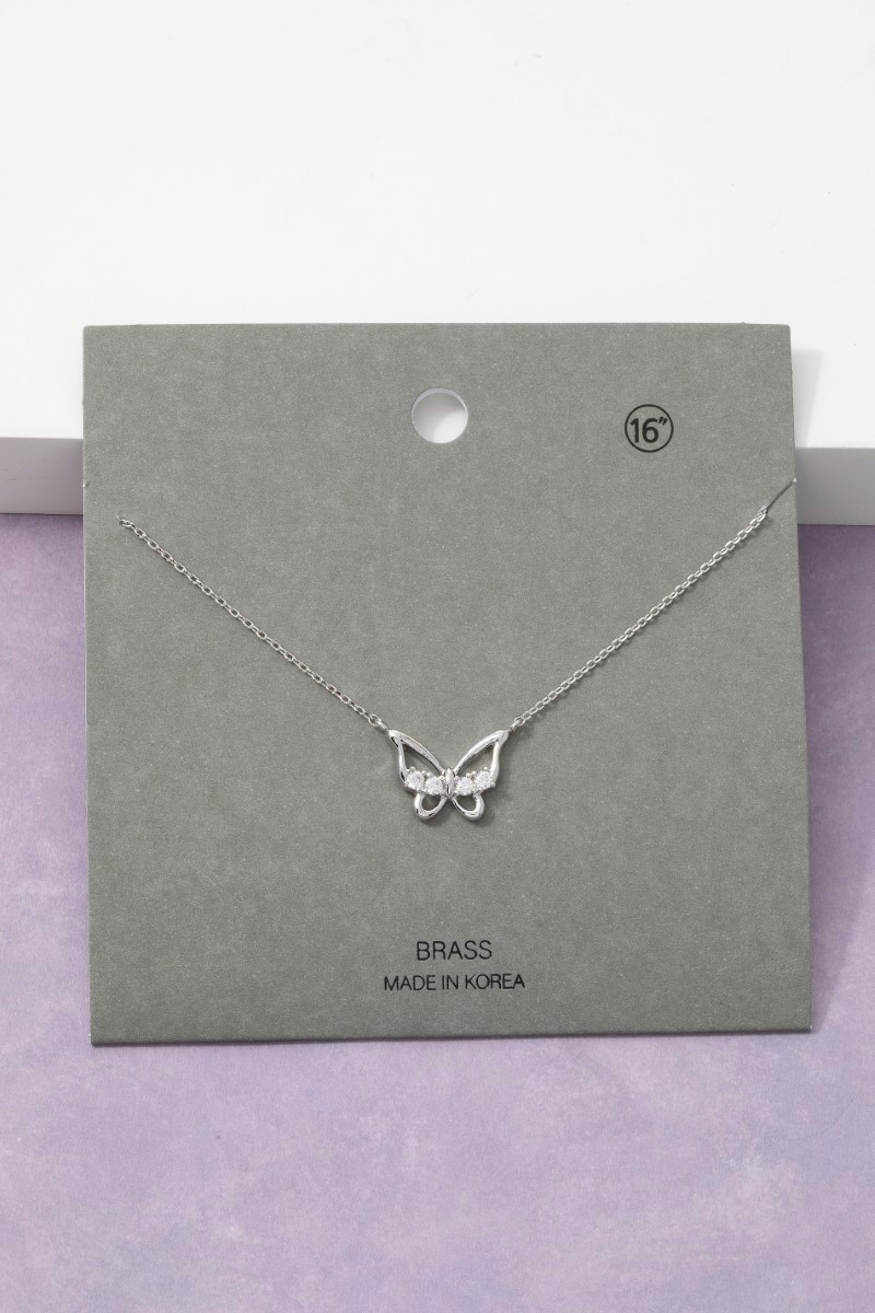 - This pendant necklace adds a modern open butterfly cubic zirconia style. Immerse yourself in fashion finesse with this statement pendant necklace.