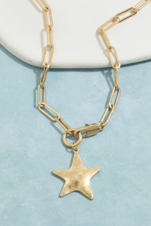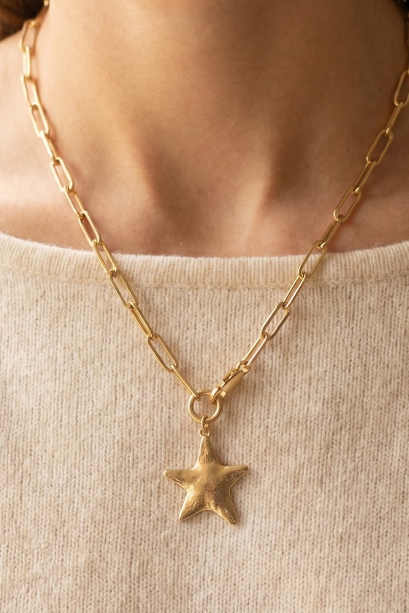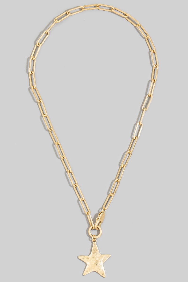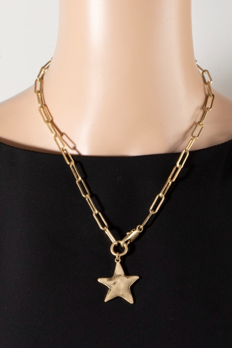 - This chain necklace brings a unique hammered star pendant paperclip style. Explore a blend of classic charm and contemporary flair.