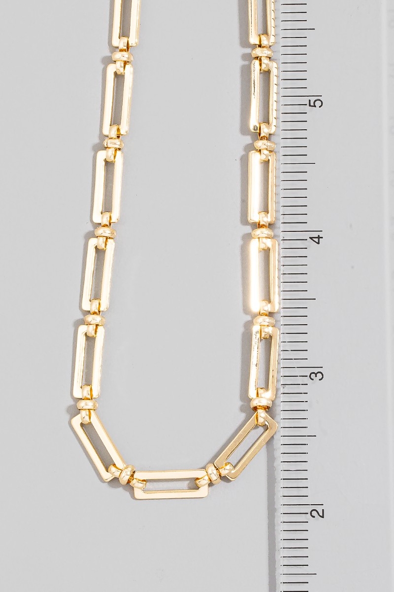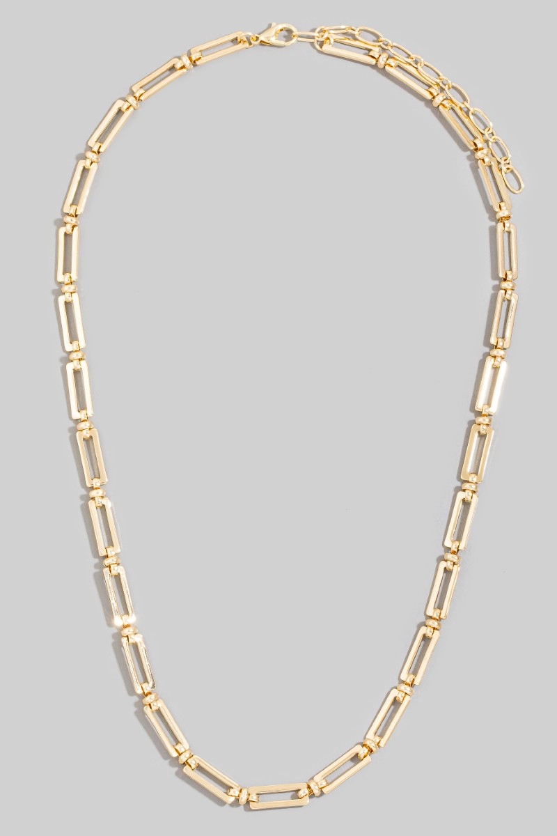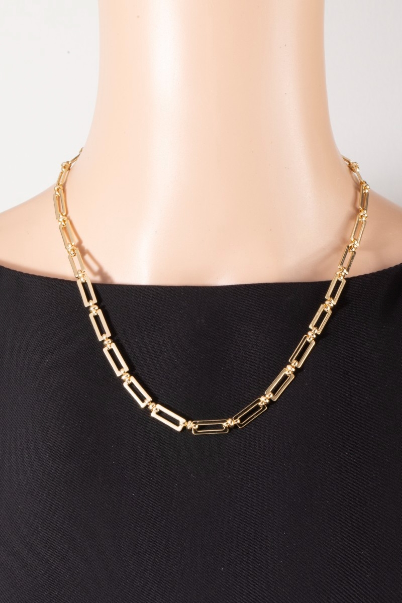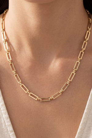 • This chain necklace introduces a unique chunky rectangular open link style. Witness the transformative power of accessories as this piece effortlessly redefines your fashion narrative.