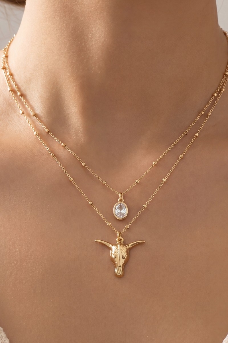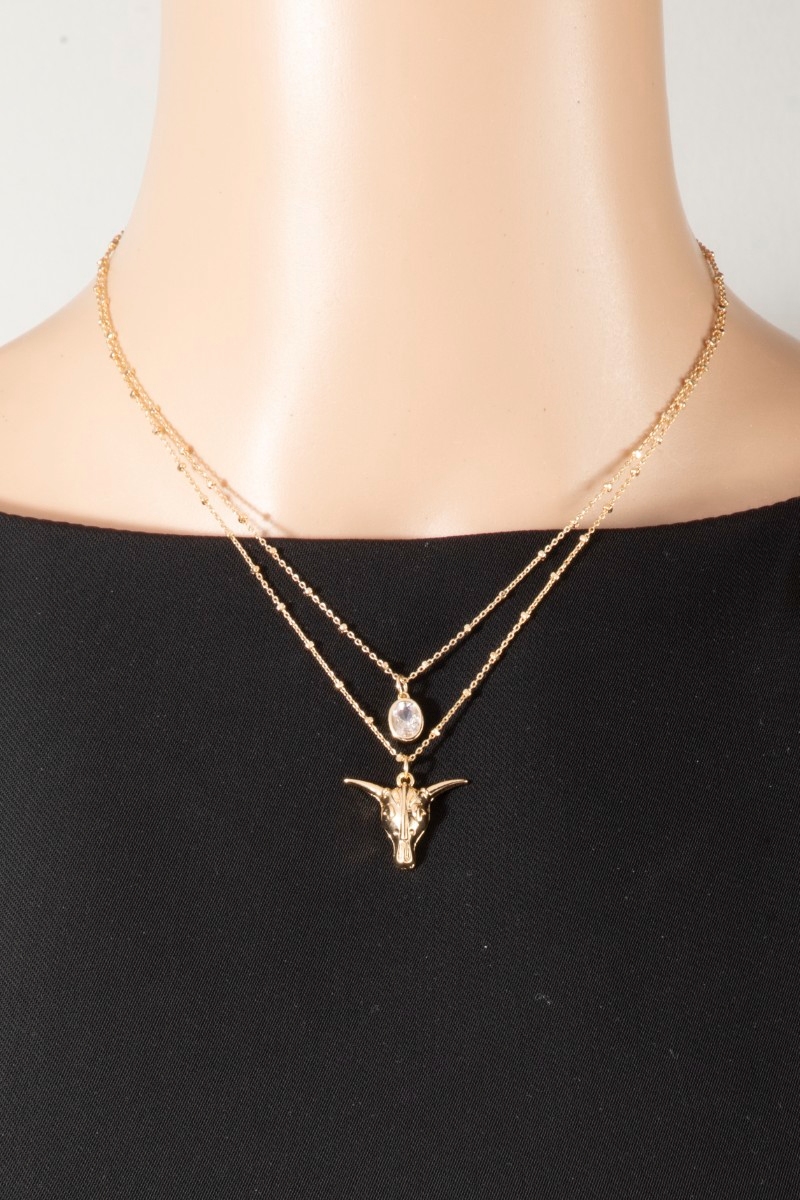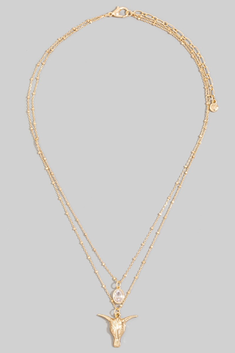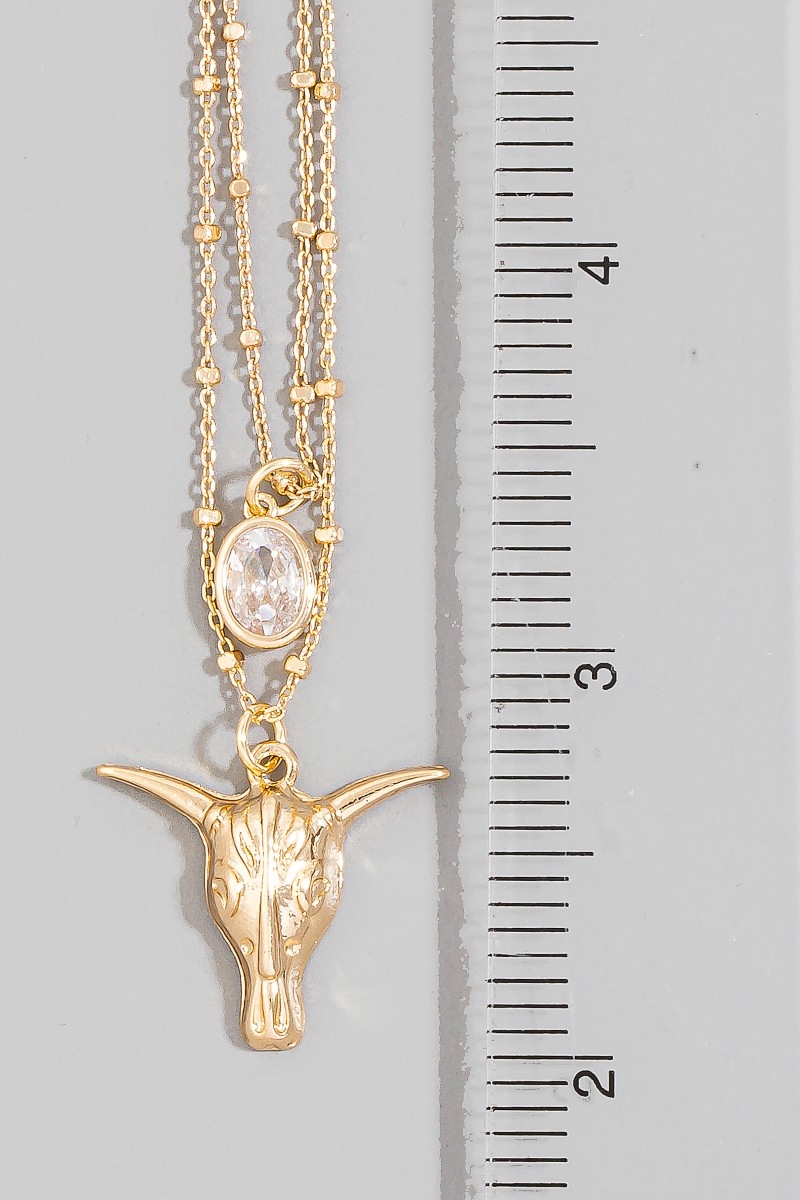 • This chain necklace introduces a unique western bull skull & cubic zirconia layered satellite style. Discover the perfect balance of functionality and fashion.