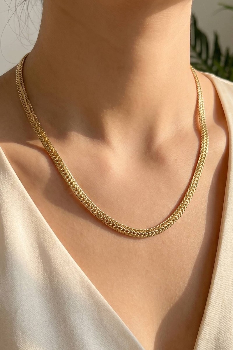 • This chain necklace displays a fashionable franco style. Witness the transformative power of accessories as this piece effortlessly redefines your fashion narrative.