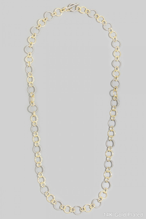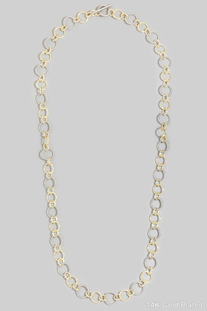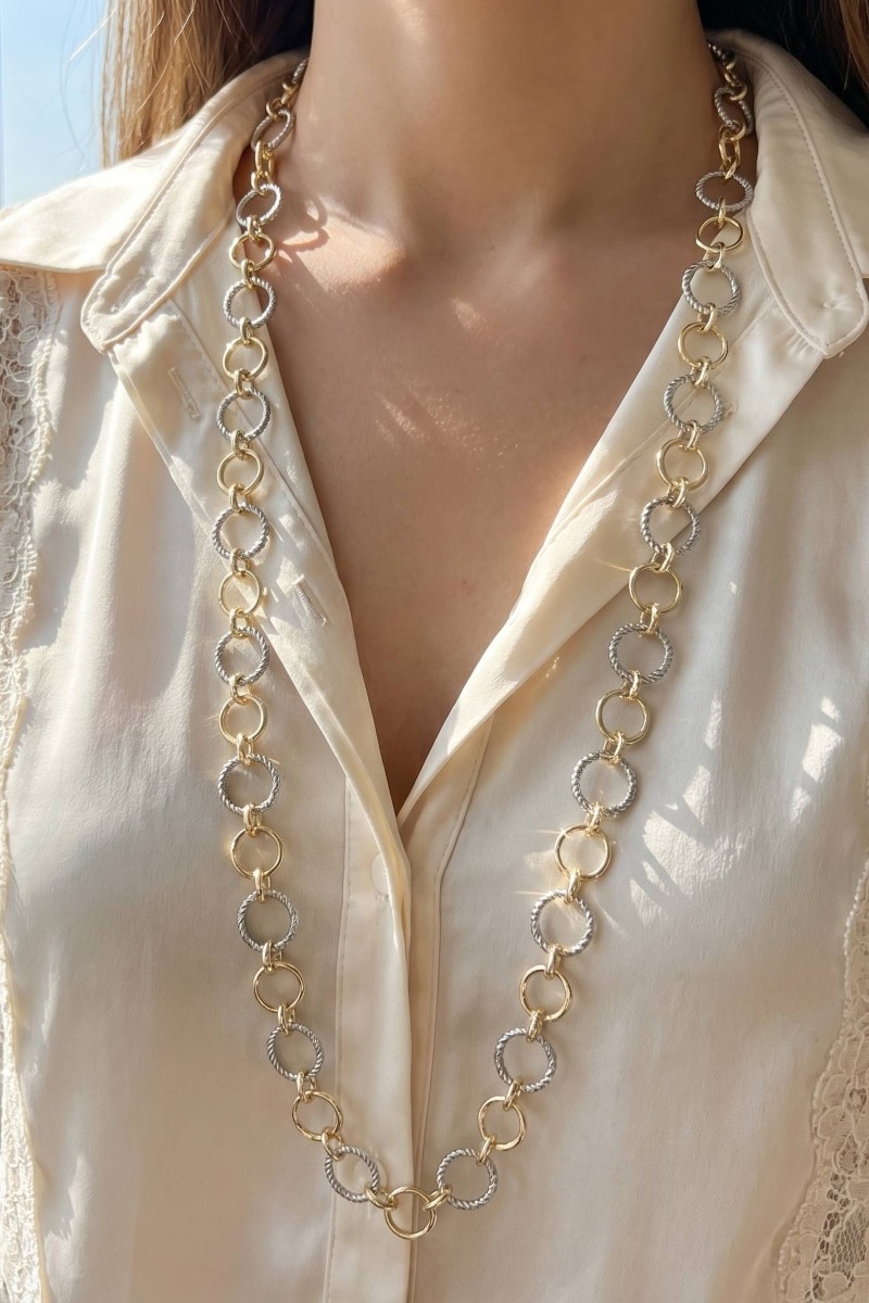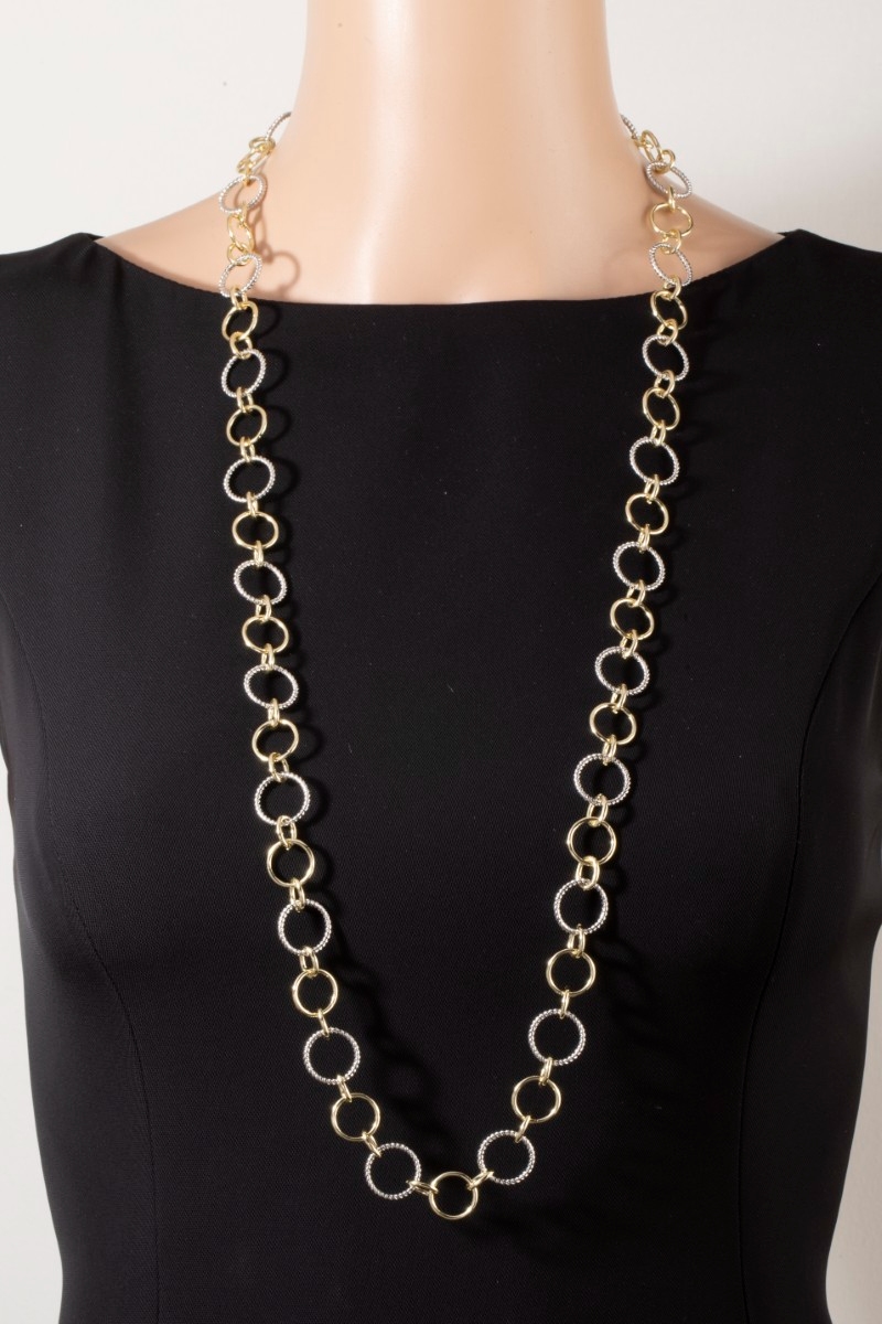 - This long necklace brings a luxurious two-tone alternating round link style. Discover the perfect balance of subtlety and flair as this long necklace effortlessly completes your look.