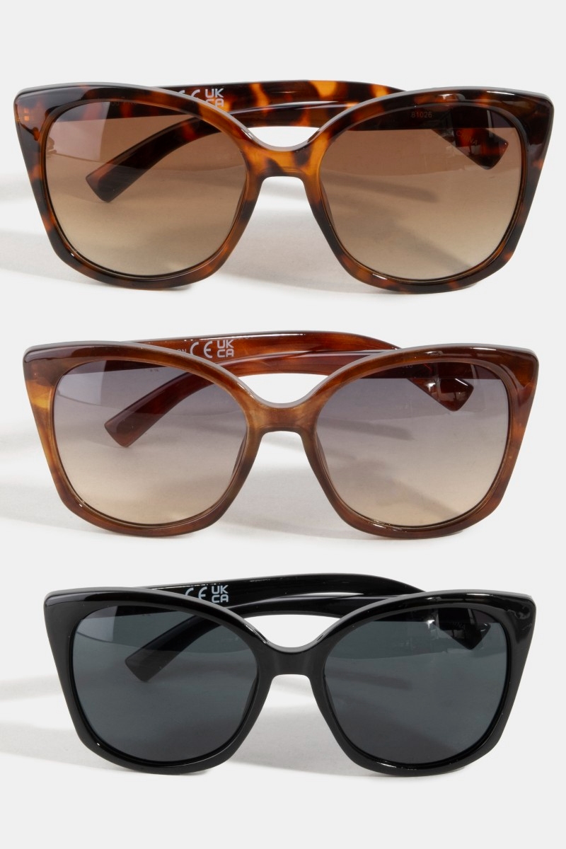 - This set of sunglasses features a fashionable assorted oversized acetate sunglasses set style. Revel in the intricate design that effortlessly distinguishes this set of sunglasses, making it a statement piece.
