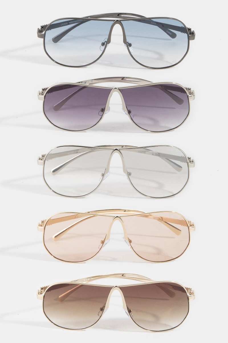 - This set of sunglasses showcases a unique oversized metal aviator sunglasses style. Immerse yourself in fashion finesse with this statement set of sunglasses.