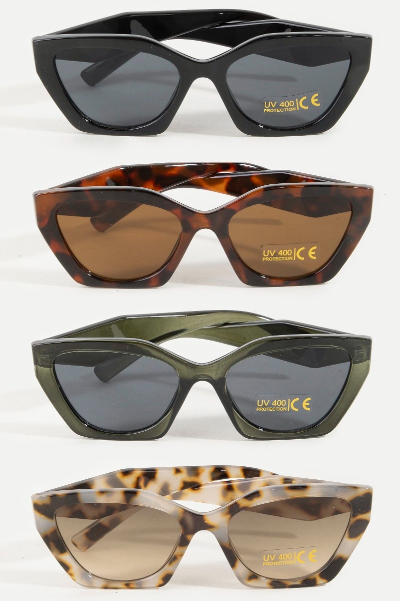 - This set of sunglasses features a fashionable twelve piece uv400 protection acetate sunglasses set style. Embark on a journey of sartorial refinement as this set of sunglasses effortlessly complements your fashion sense.