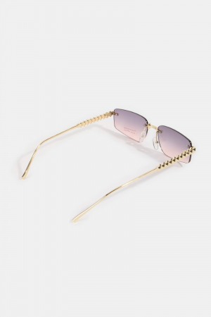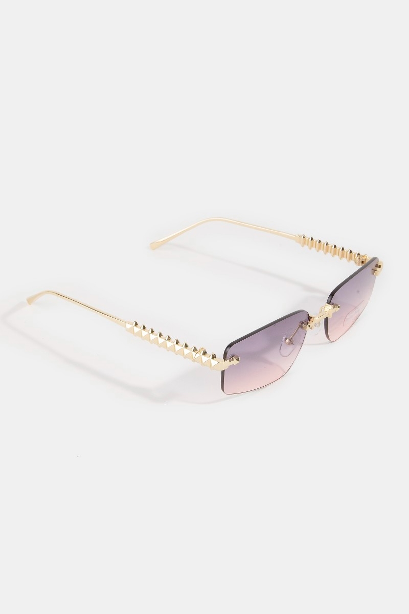 - This set of sunglasses adds a modern rimless rectangle spike studded top frame sunglasses style. Unveil modern elegance with this subtly intricate set of sunglasses.