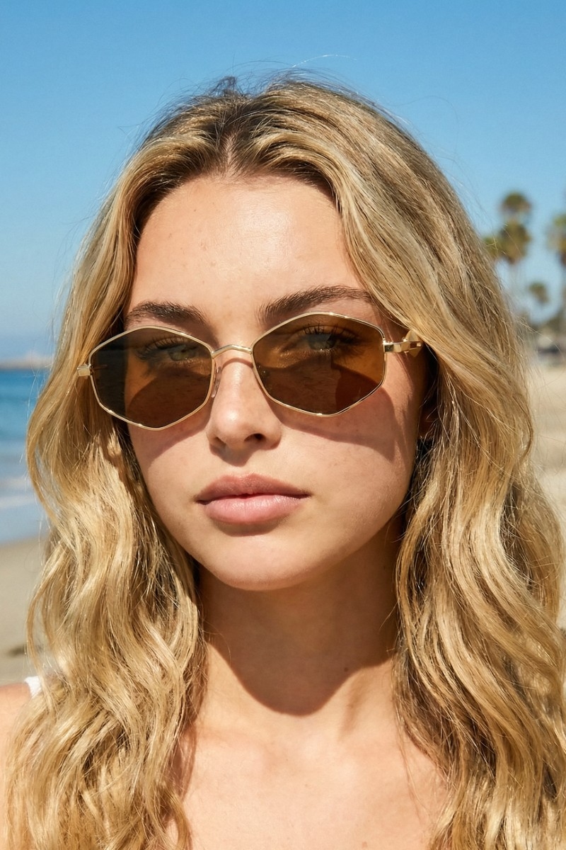 • This set of sunglasses introduces a stunning geometric hexagonal metal frame sunglasses set style. Savor the allure of detailed craftsmanship in this exquisite set of sunglasses.