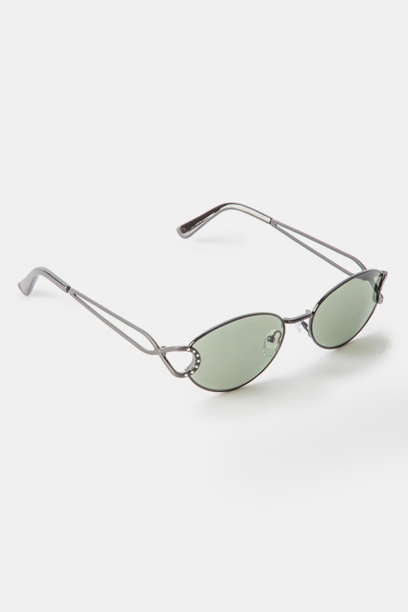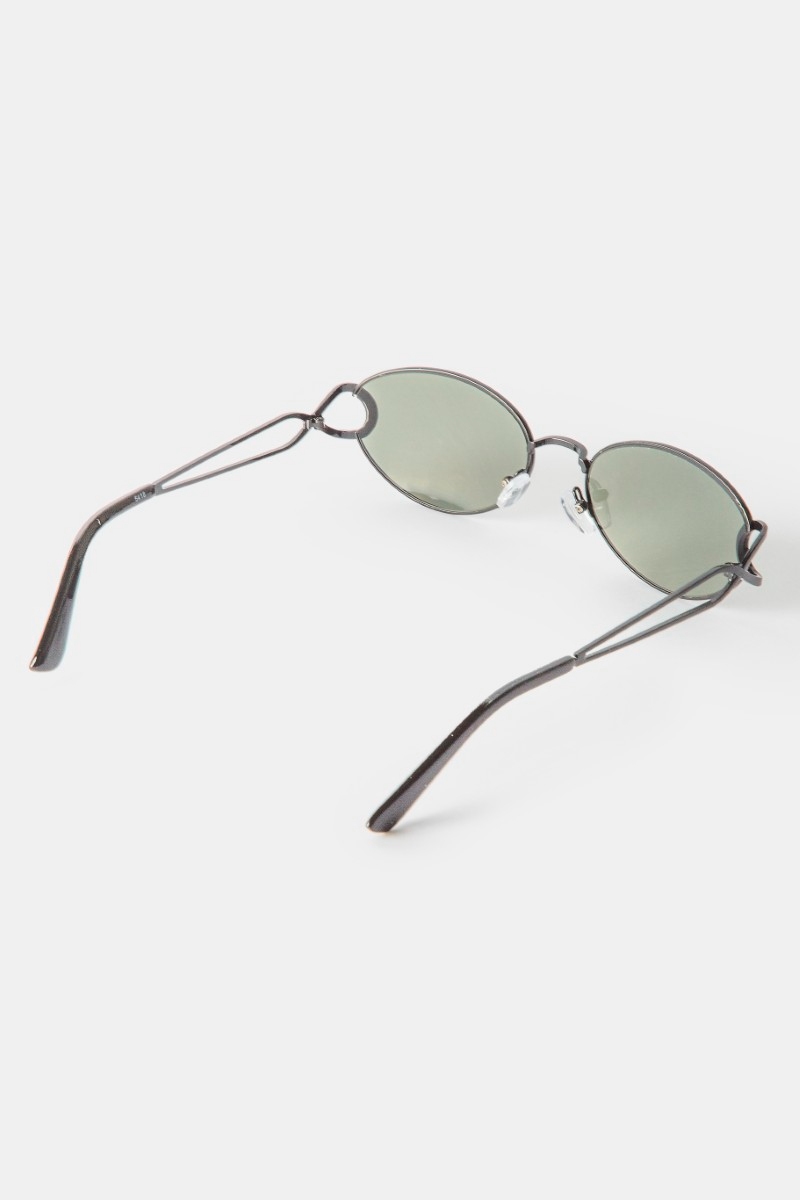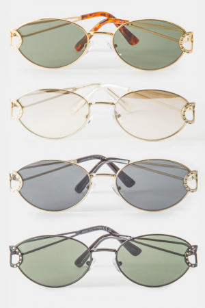- This set of sunglasses displays a fashionable slim oval metal frame sunglasses set style. Step into a world of refined taste as this set of sunglasses effortlessly refines the details of your outfit.