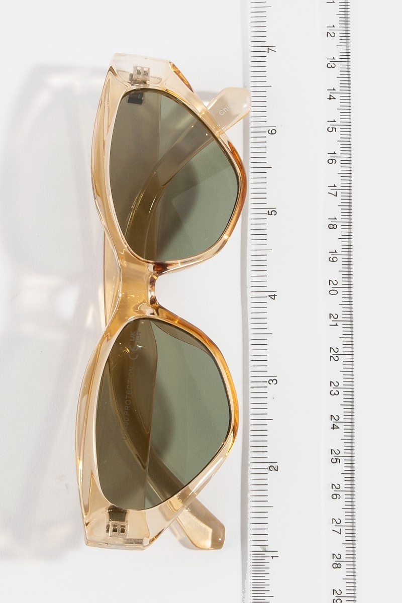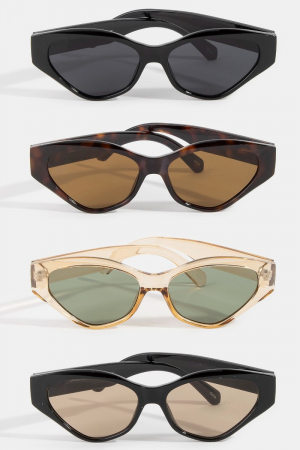 - This set of sunglasses adds a modern geometric angular cat eye sunglasses set style. Immerse yourself in the details of design, as this set of sunglasses effortlessly becomes a conversation starter.