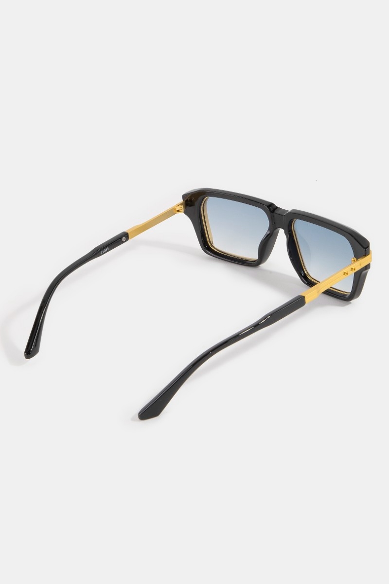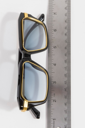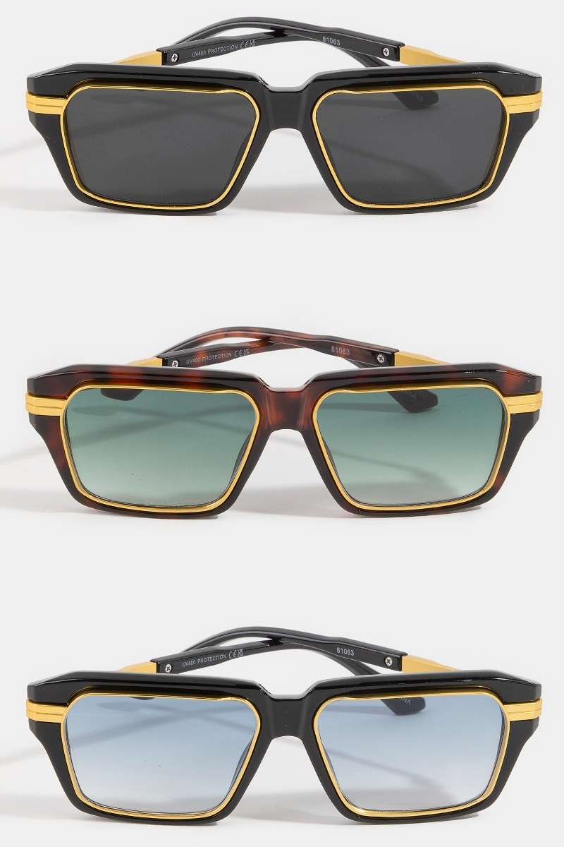 • This set of sunglasses showcases a unique oversized striped gold inlay sunglasses set style. Discover the perfect balance of subtlety and flair as this set of sunglasses effortlessly completes your look.