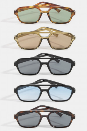 - This set of sunglasses brings a luxurious double bridge geometric square sunglasses set style. Indulge in the allure of exquisite craftsmanship as this set of sunglasses effortlessly adds a touch of luxury to your attire.